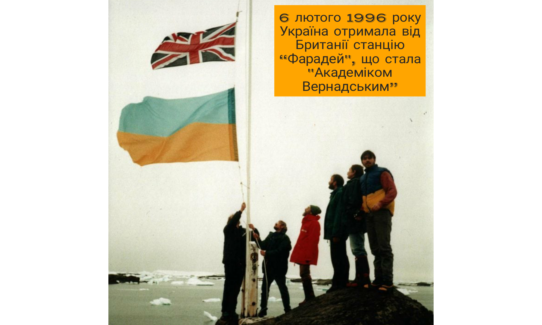 Саме 6 лютого 1996-го Велика Британія передала нам одну з найкращих своїх антарктичних станцій – “Фарадей”. Над нею було піднято синьо-жовтий стяг, а назва змінилася на “Академік Вернадський”.