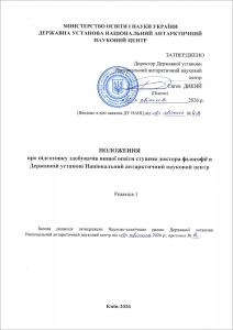 Державна установа Національний антарктичний науковий центр запроваджує освітню діяльність з підготовки здобувачів третього (освітньо-наукового) рівня вищої освіти, що передбачає присвоєння кваліфікації PhD доктор філософії