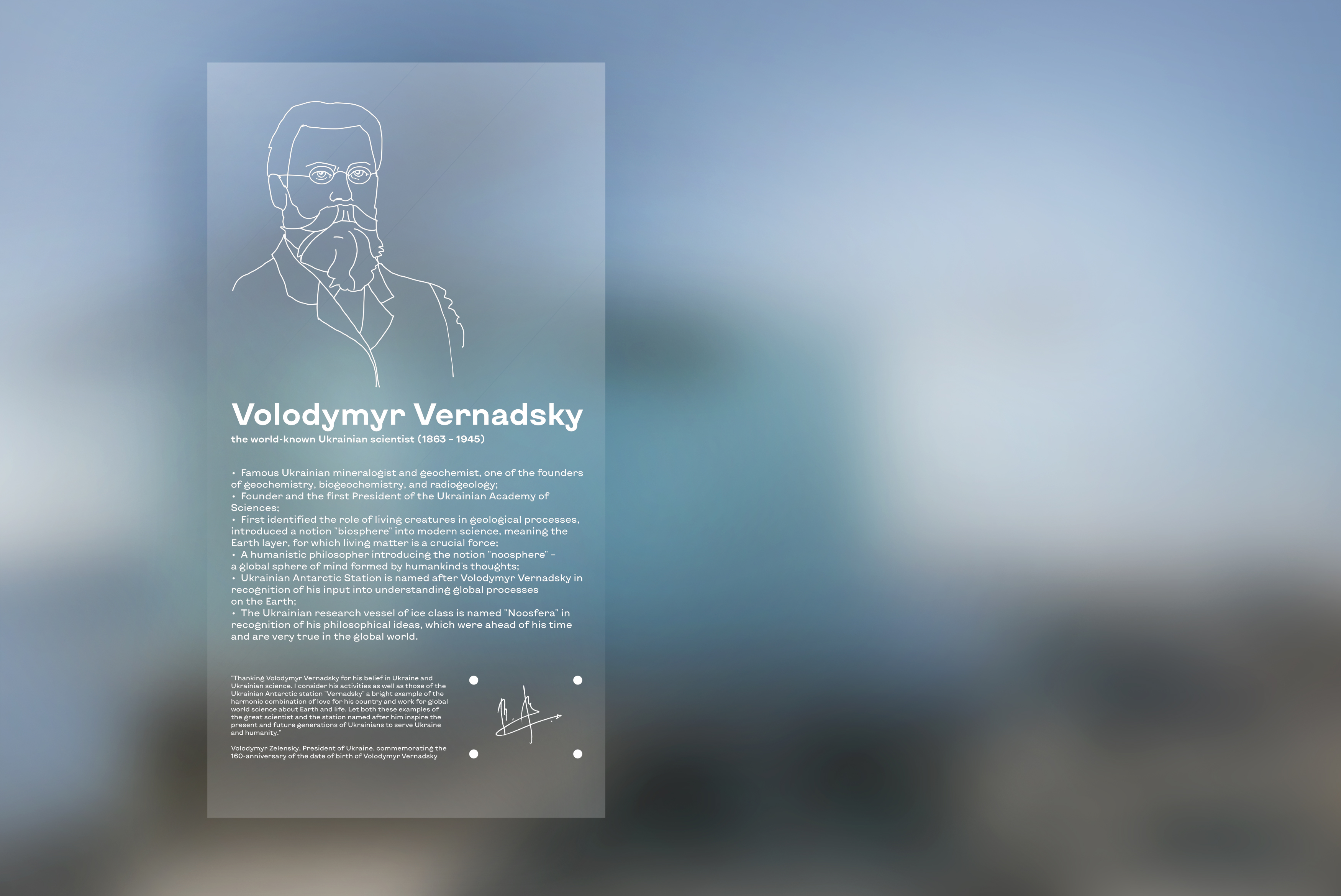 Today, on the 160th anniversary of the birth of Volodymyr Vernadsky, the President of Ukraine Volodymyr Zelenskyy presented the polar explorers with another information plaque – in fact, about the outstanding Ukrainian scientist, in whose honor our station is named. The team of the 28th UAE, which will soon go to Antarctica for a year, will take this board with them and solemnly attach it.