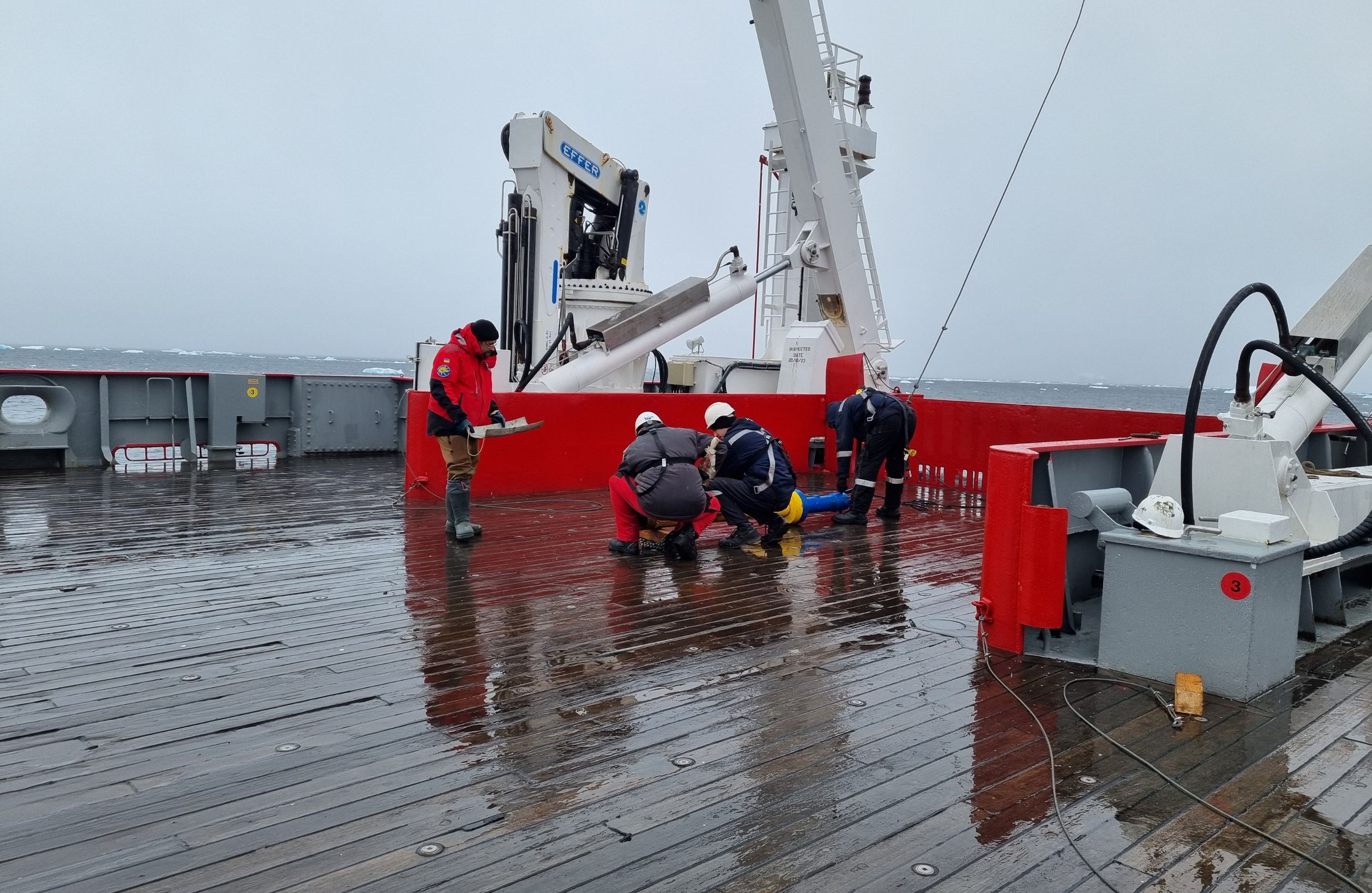 Scientists managed to take 7 sediment cores at 7 points near our station (Penola and French Straits, where the tectonic fault and glacial valleys are found). On board, the samples were described in detail, photographed and divided into parts for delivery to Ukraine. Further, they will be studied in the laboratories of Kyiv and Odesa.