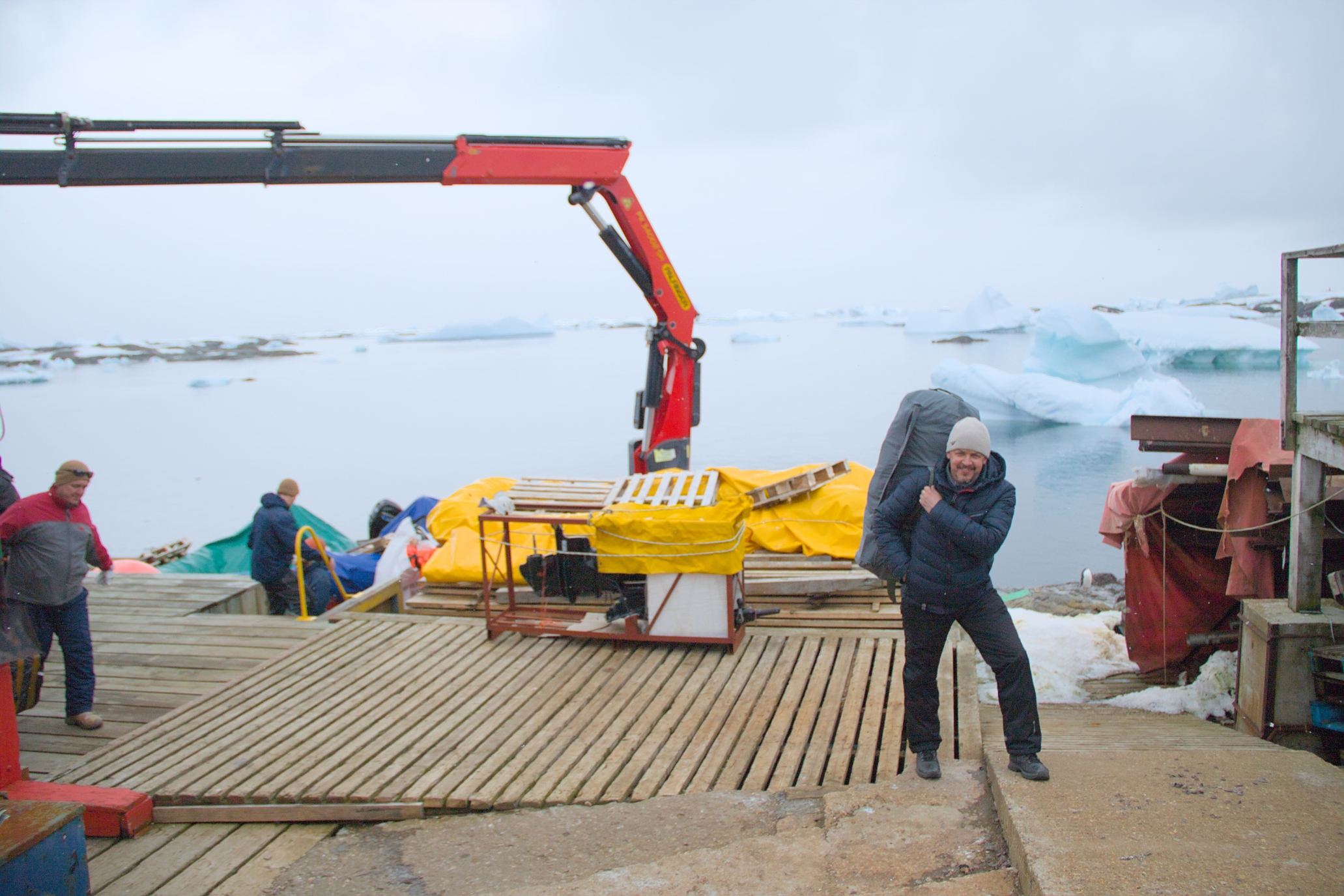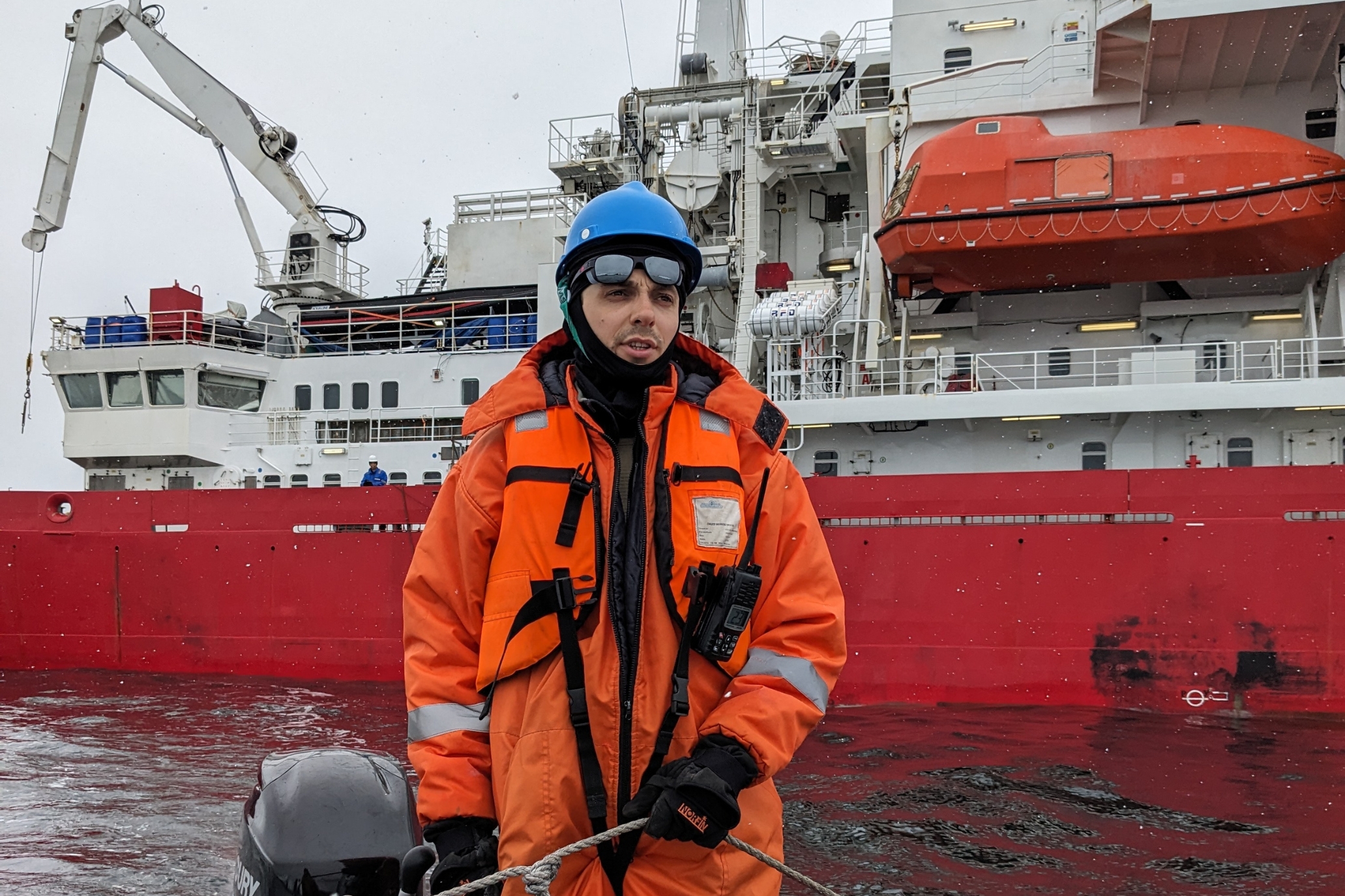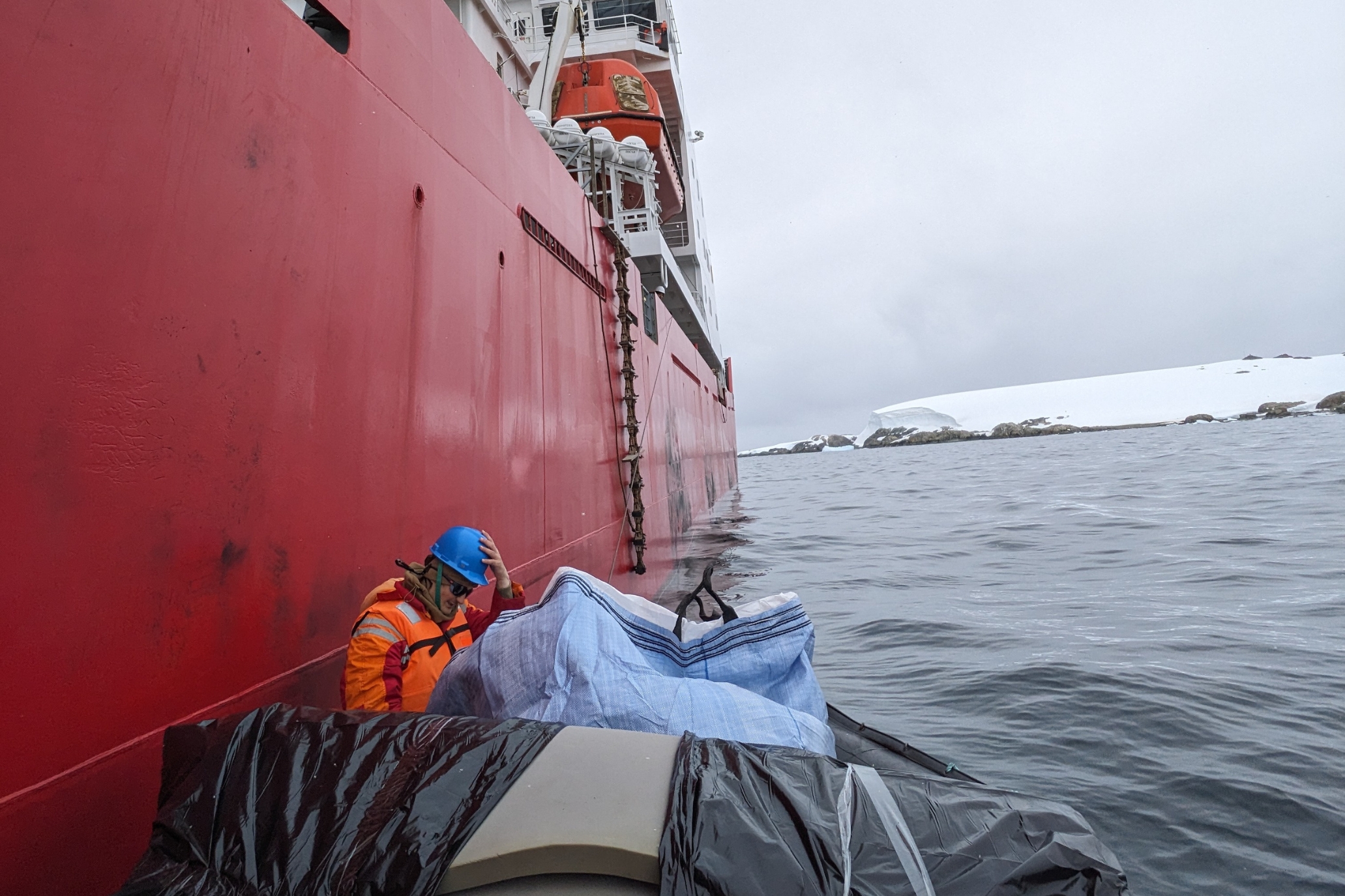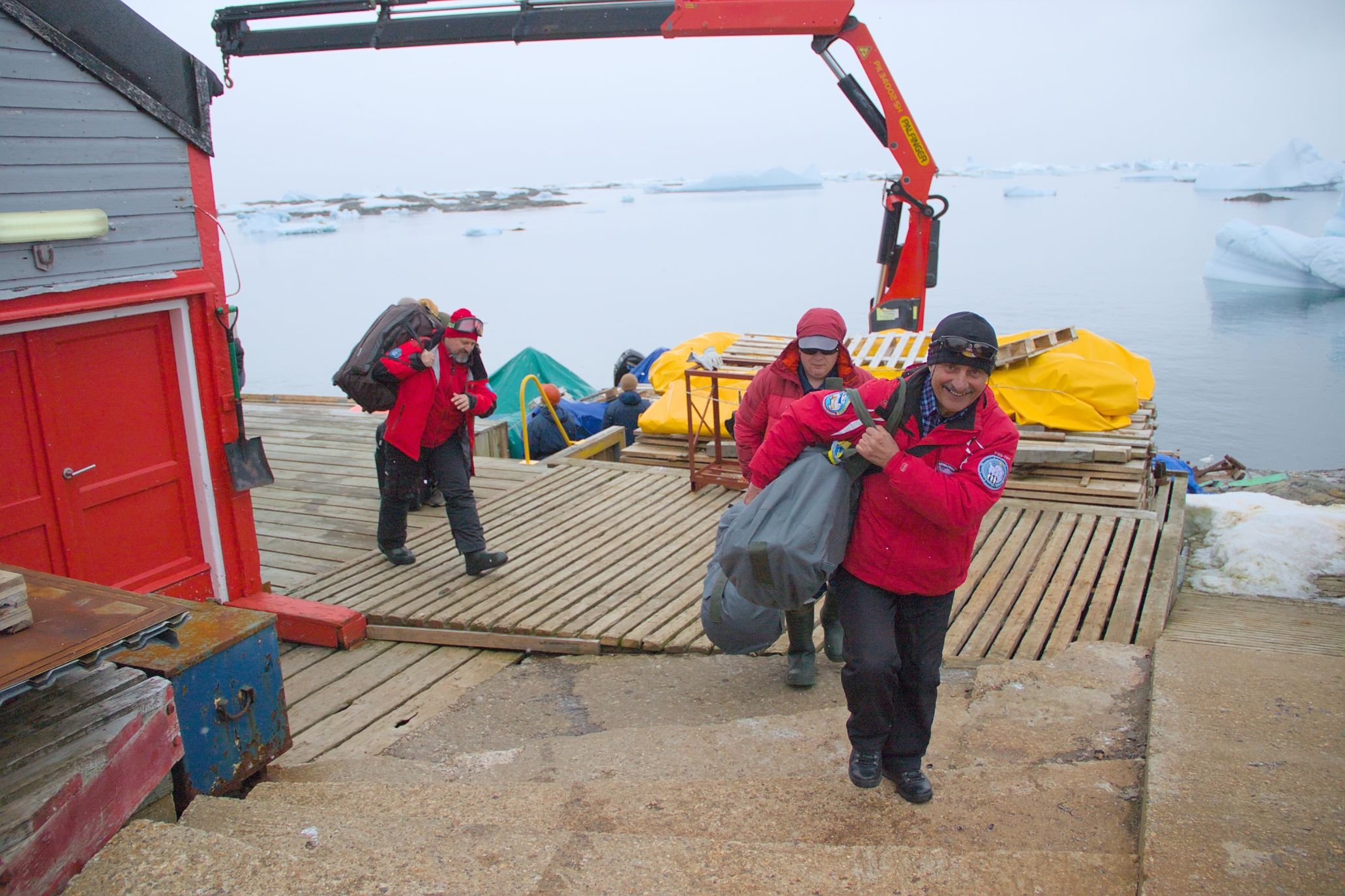 The ship is currently being unloaded (using motorboats), after which it will head to the Chilean port of Punta Arenas to continue its Antarctic mission. But we will talk about this later.
