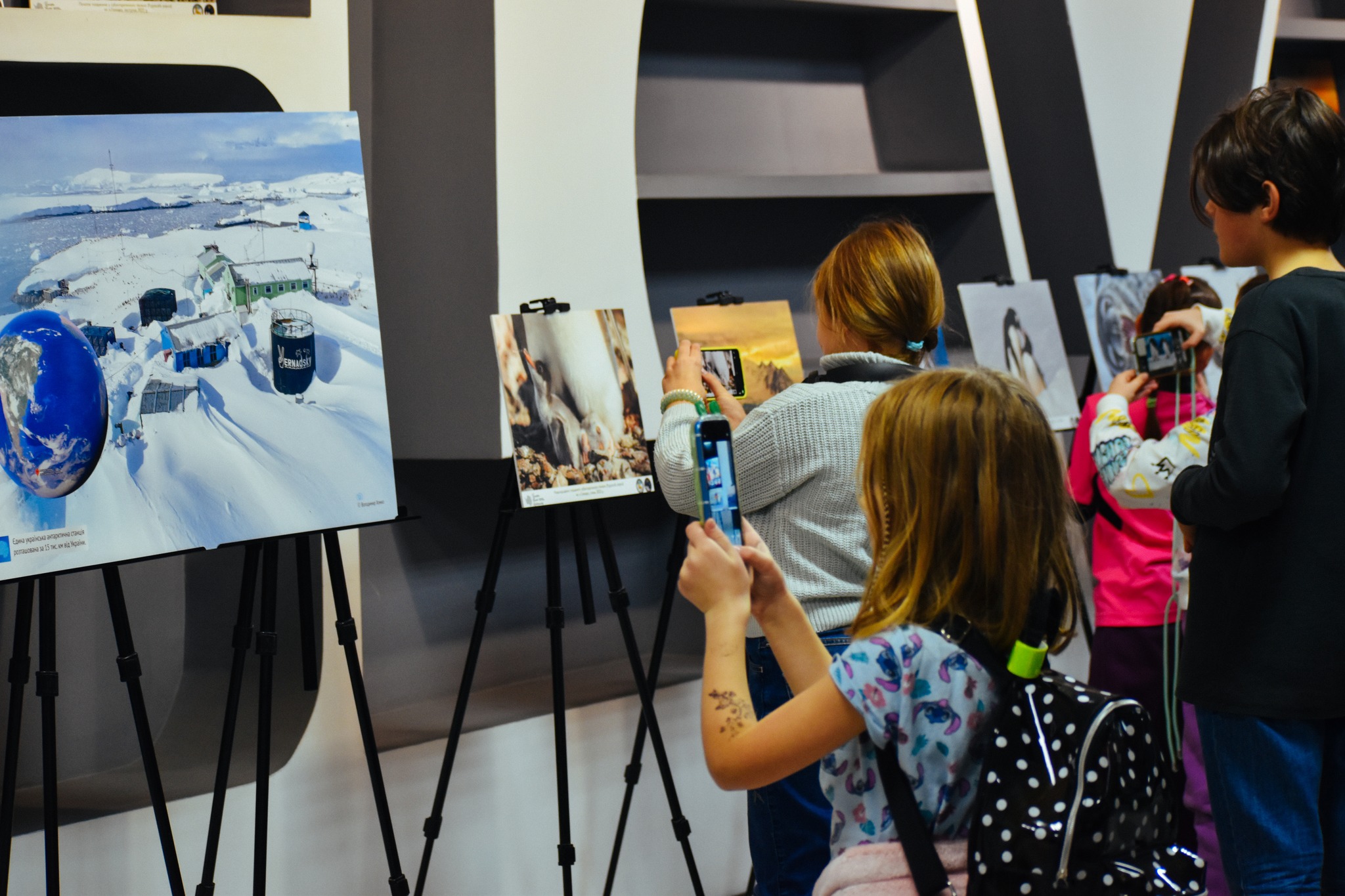 On Friday, 15 November, the exhibition was opened for children. They were very excited about the photos and videos of Antarctica, especially its inhabitants, and even re-shooted their favourite photos with mobiles.