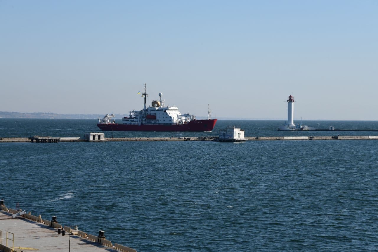 Флагман українського науково-дослідного флоту – криголам «Джеймс Кларк Росс» – вже в Одесі. Під синьо-жовтим прапором він прибув у одеський морський порт сьогодні, 5 жовтня 2021 року.
