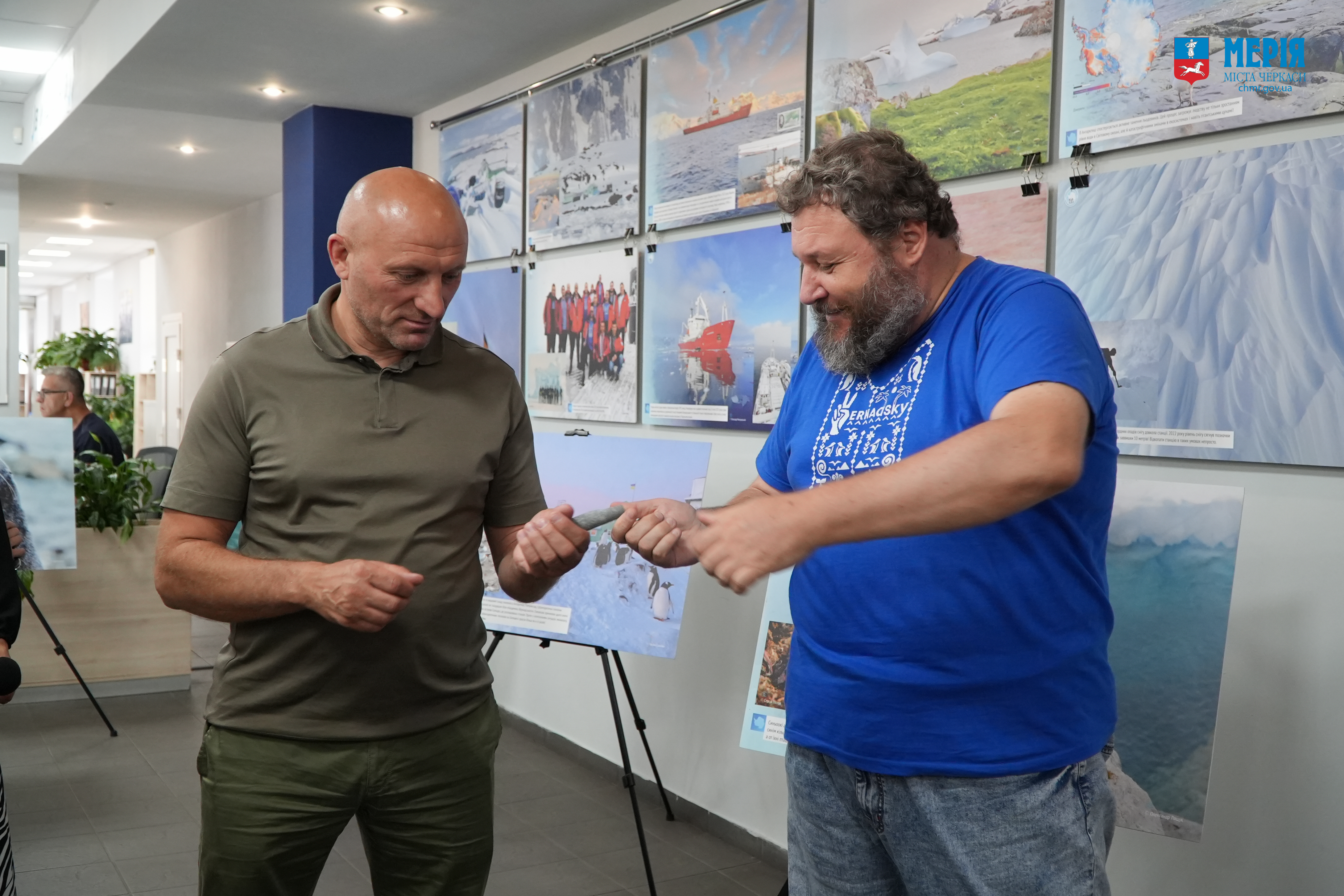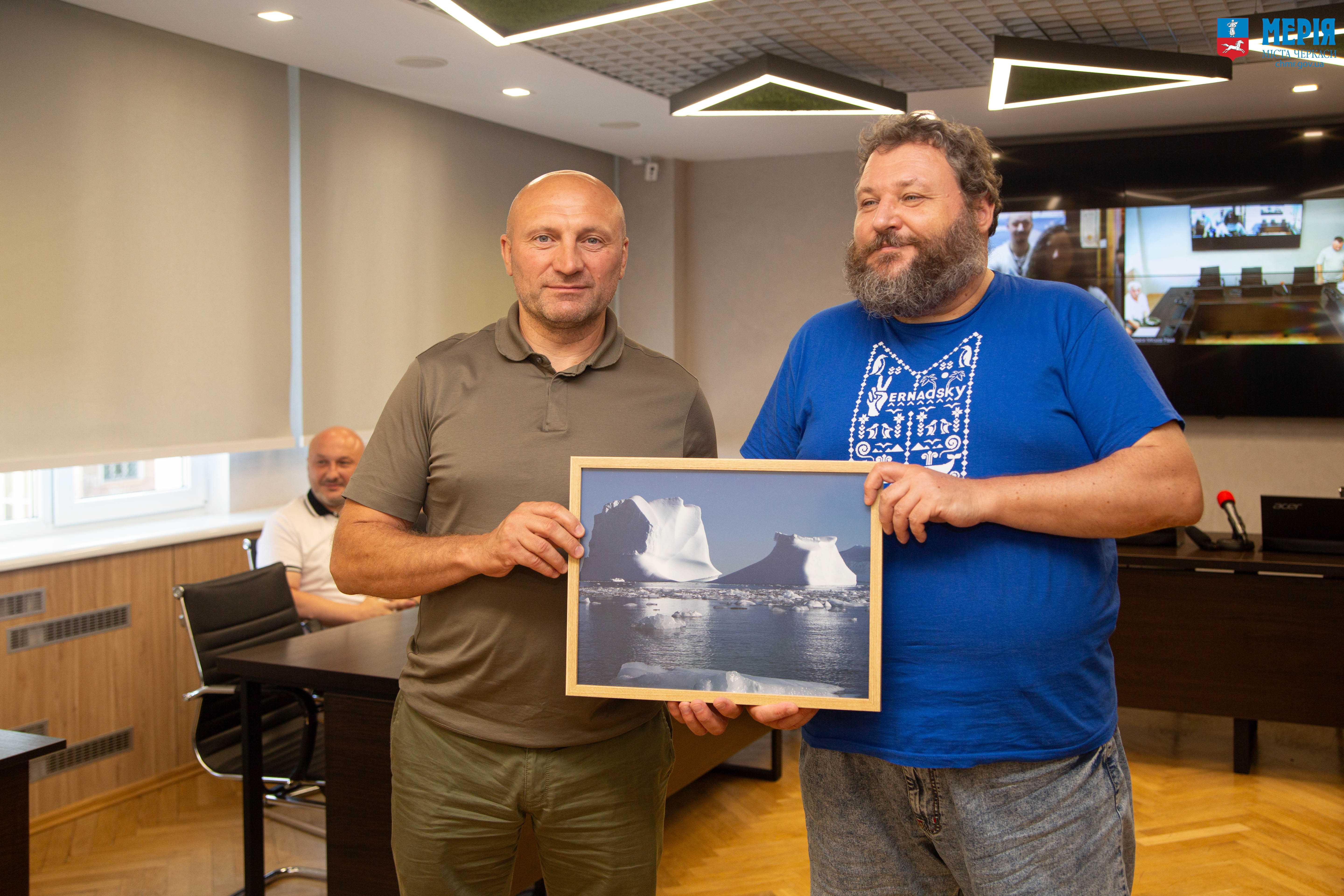 Спершу представники полярної спільноти зустрілися з мером Черкас Анатолієм Бондаренком та колективом міськради. У спілкуванні взяла участь ще одна зимівниця з Черкащини – Іванна Котурбаш, яка нині працює лікаркою на “Вернадському”. Разом з колегами вона включилася онлайн прямо із зимової Антарктики.