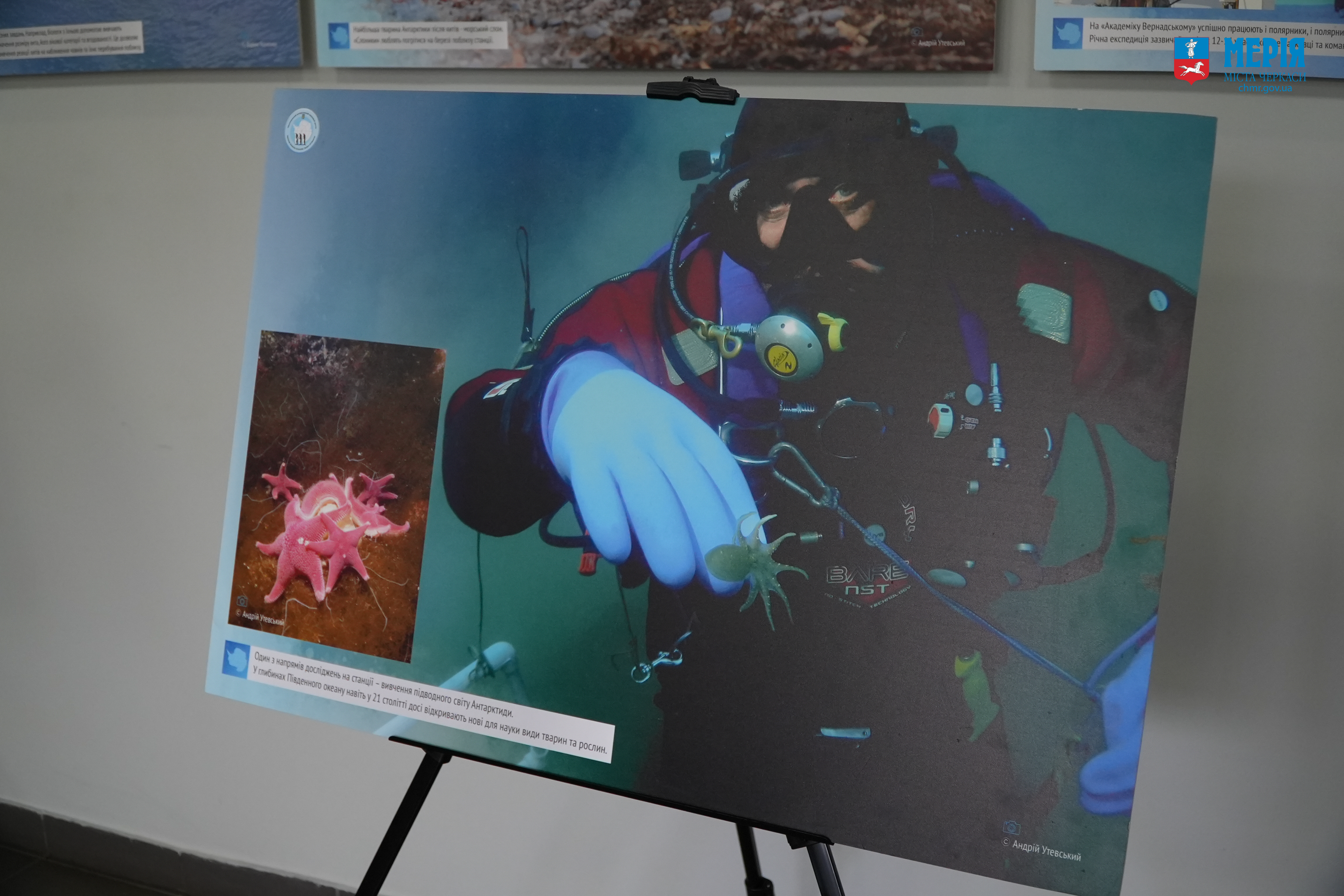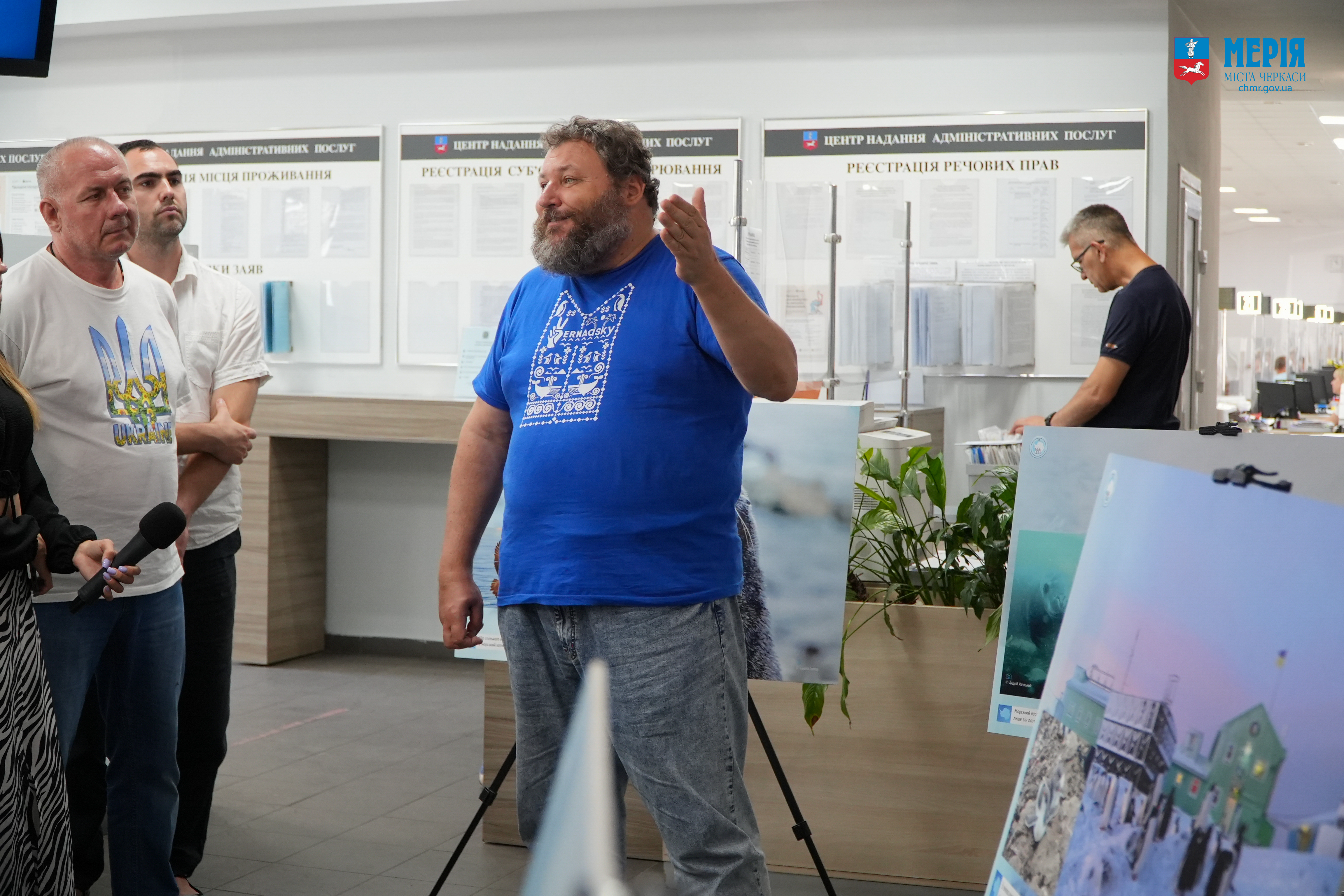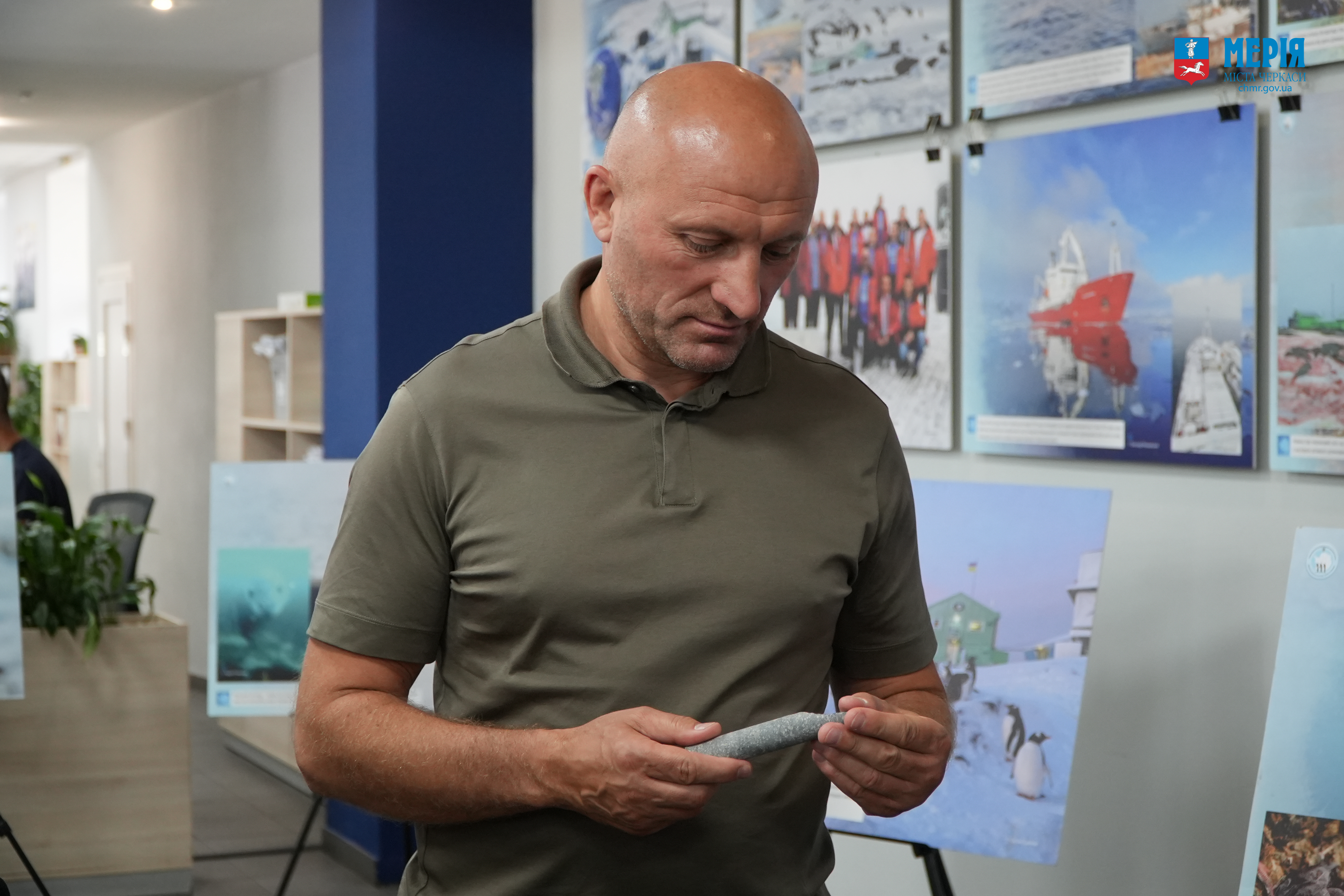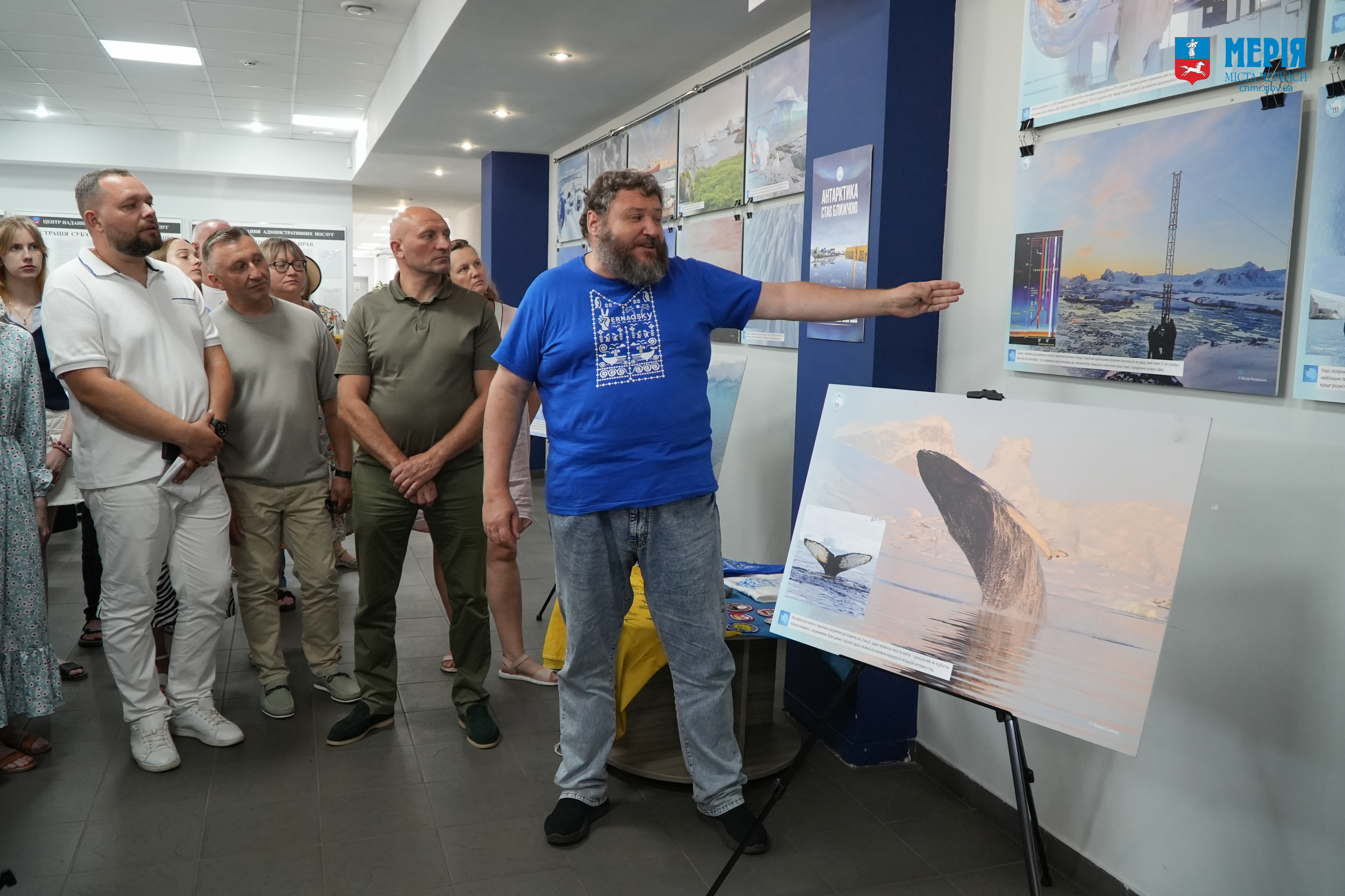 Потому відбулося відкриття експозиції в ЦНАП, де Євген Дикий провів для усіх присутніх коротку екскурсію світлинами. Він, зокрема, розповів, як українці присутні в Антарктиці вже понад 200 років, чому Україна отримала станцію від Британії, які дослідження ми там проводимо тощо.