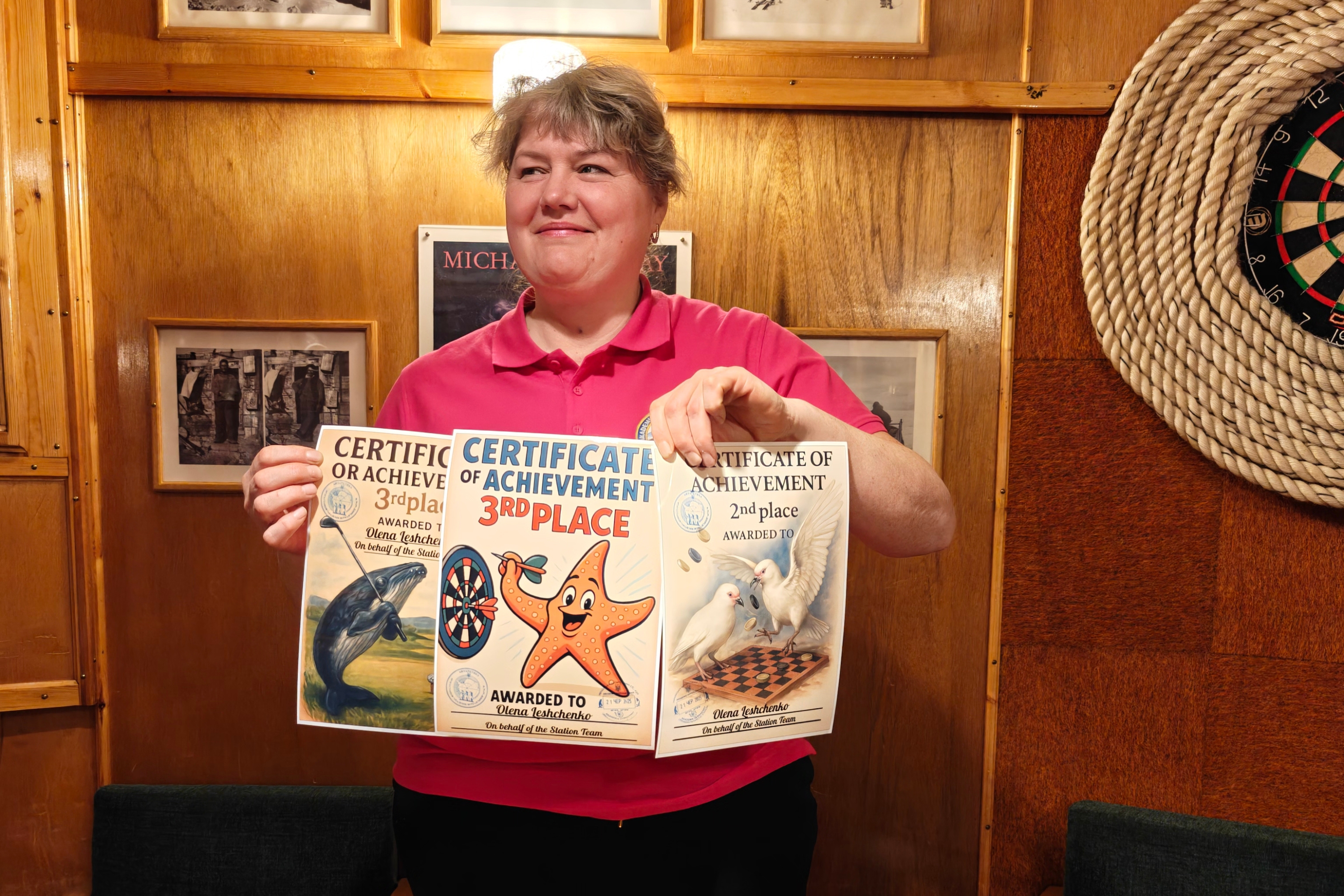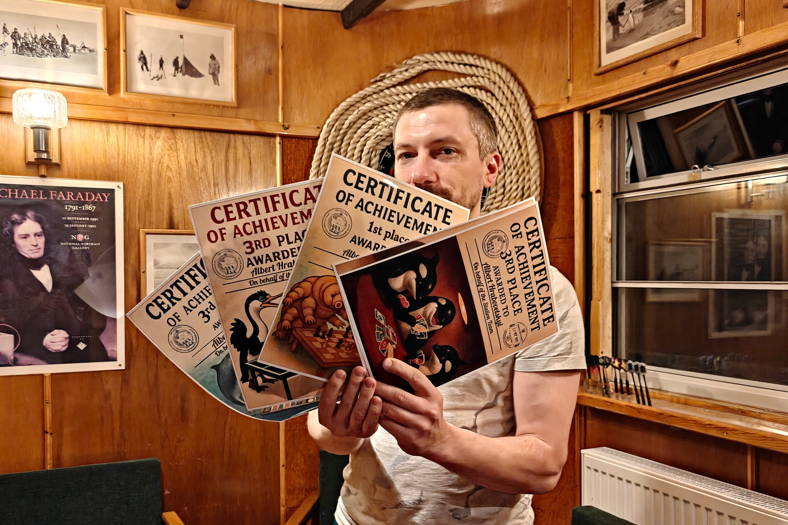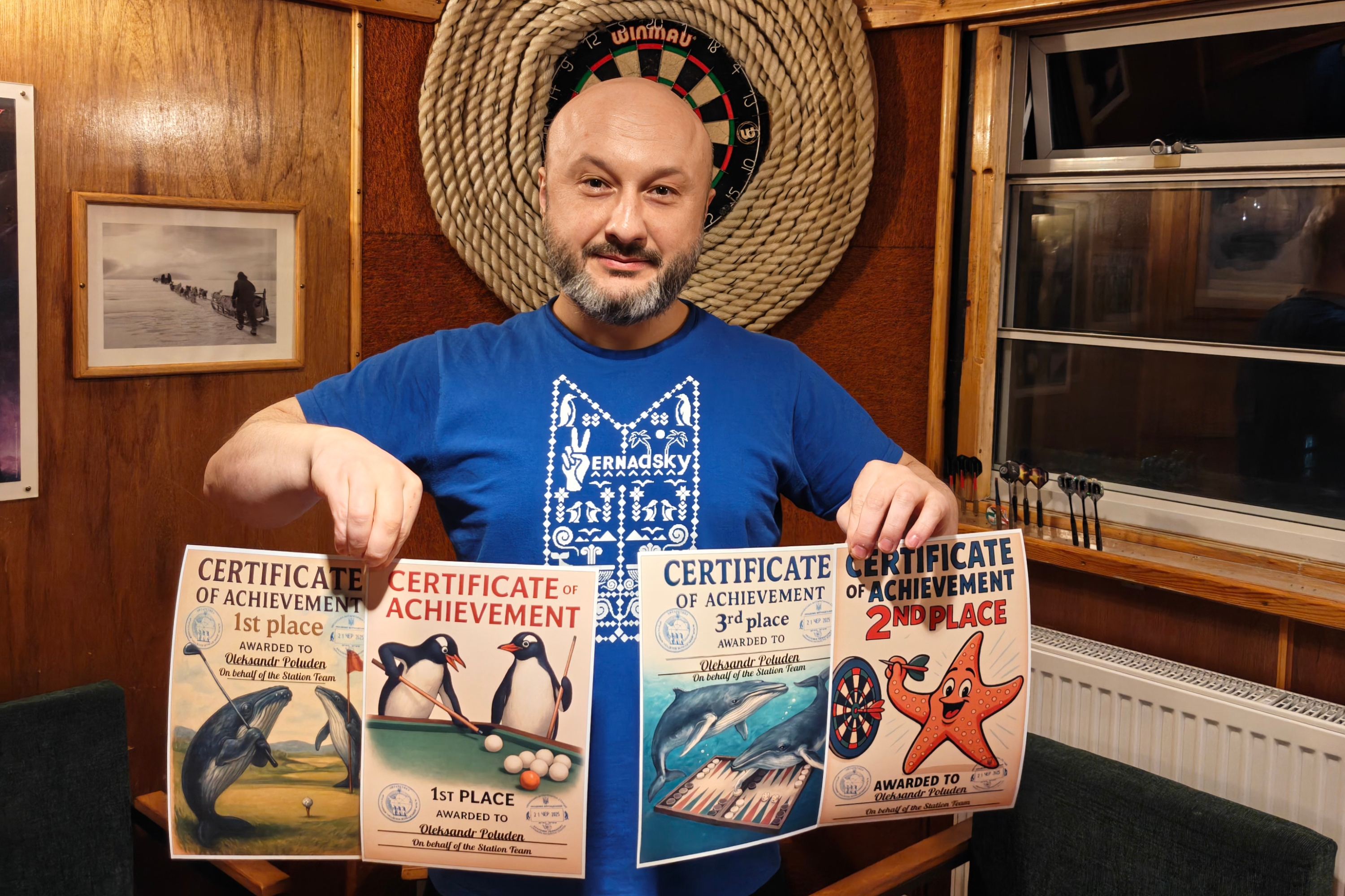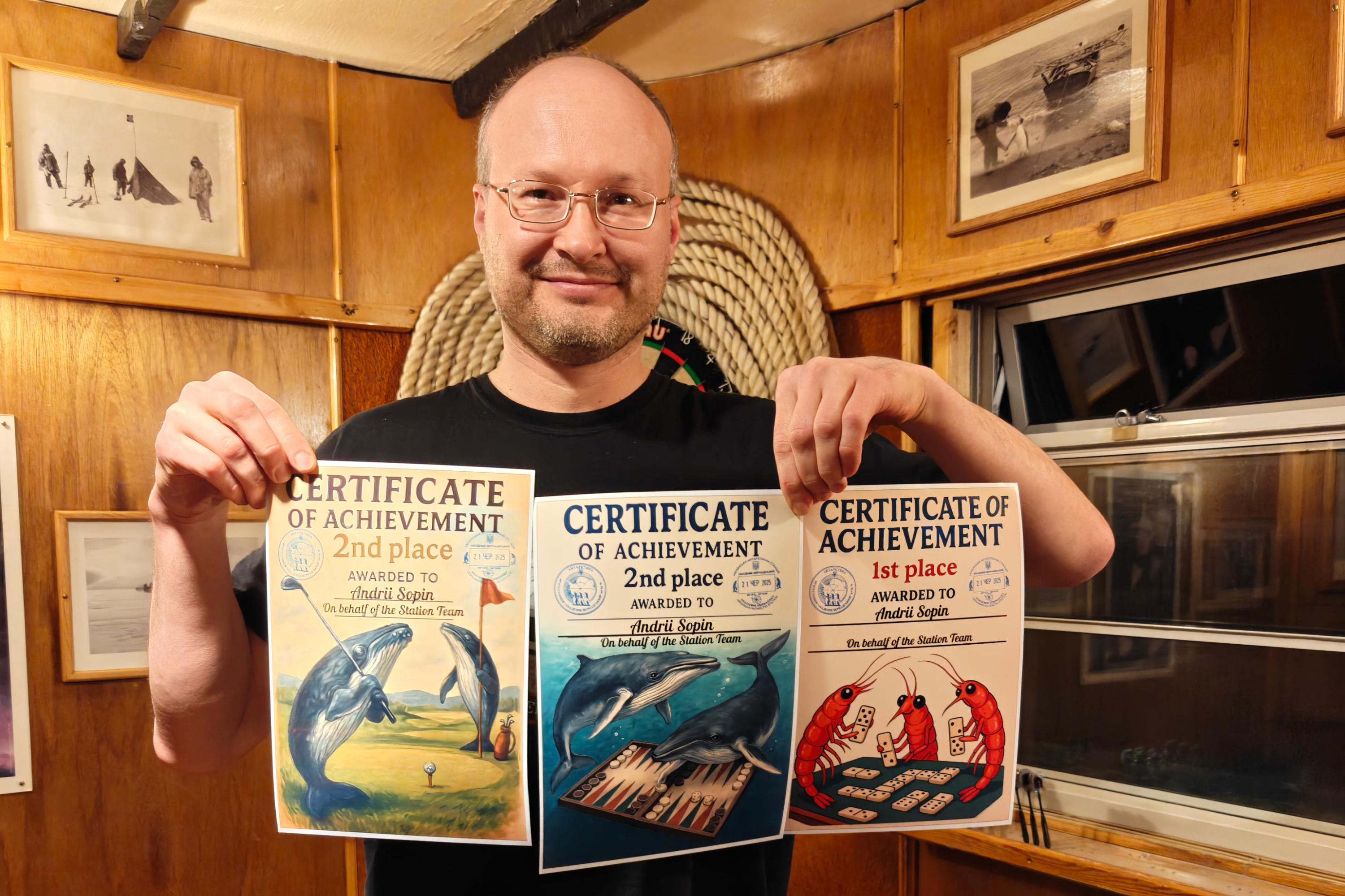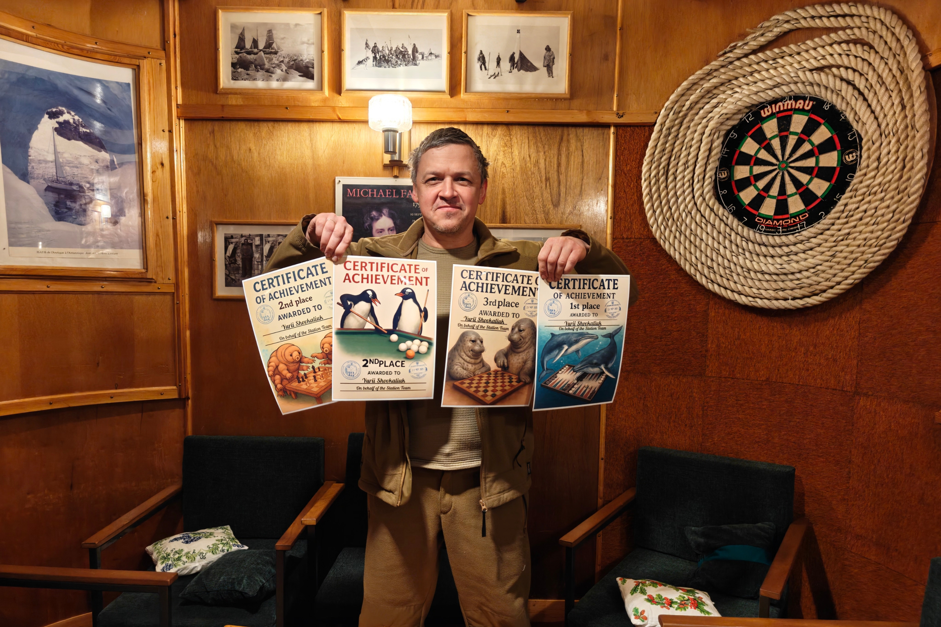 Найбільше сертифікатів і відповідно призових сходинок здобув геофізик Альберт Грабовецький. Він посів перші місця в шахах та шашках, а також треті — в настільному тенісі, uno та нардах. По 4 сертифікати отримали очільник експедиції Олександр, метеоролог Роман Глущенко, біологиня Єлизавета Сафонова та механік Юрій Шовкалюк.