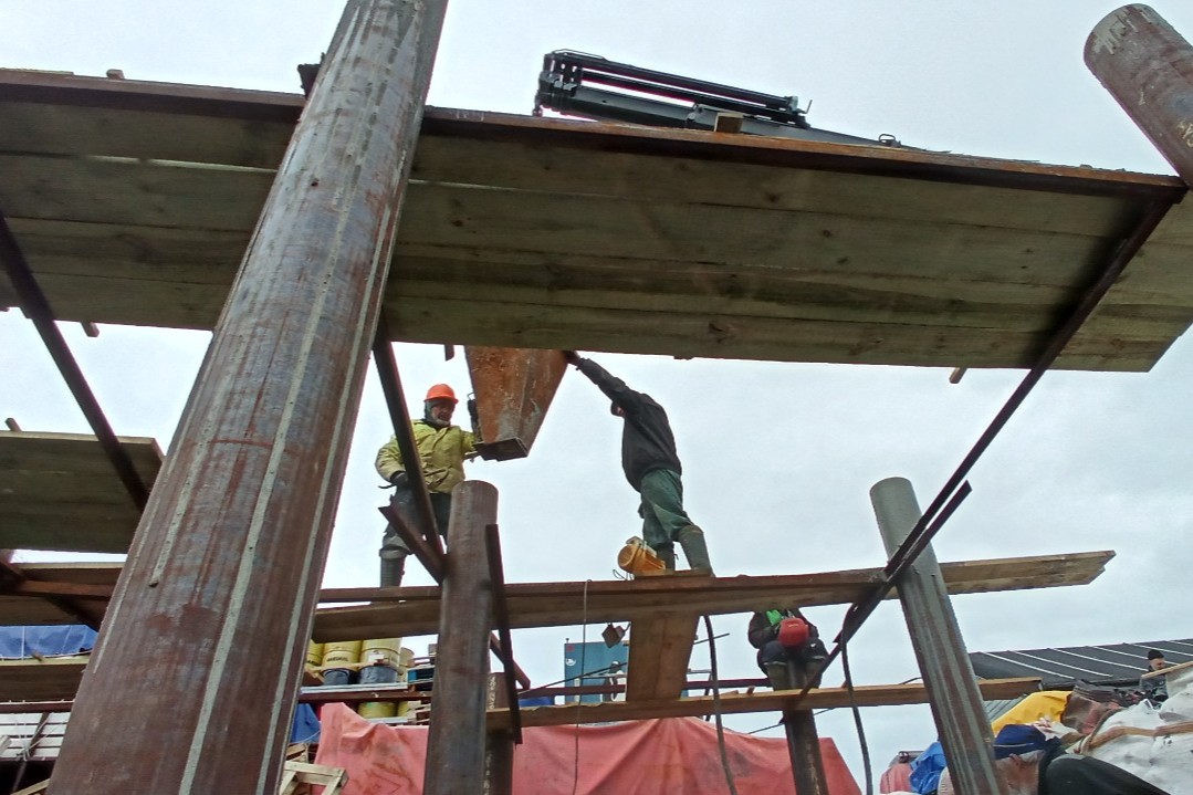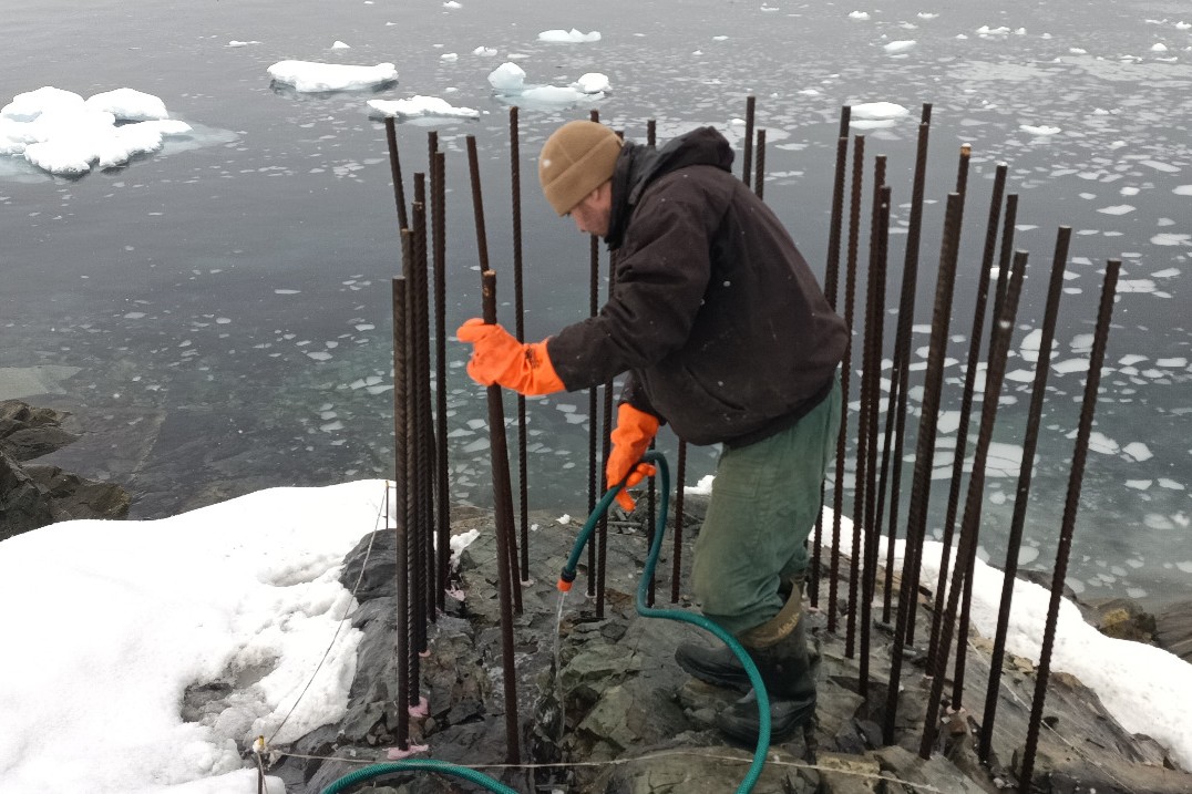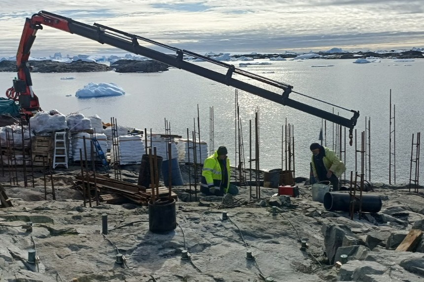 Після ремонту майданчика для зберігання сміття з’явилося нове місце, придатне для встановлення крана: на березі поруч з елінгом-складом. Там протягом цього сезону наші фахівці зробили проєкт фундамента та арматурний каркас.