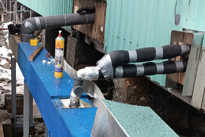 Було змонтовано новий трубопровід з холодостійкого пластику, а зовнішній короб тепер має шар утеплення та обігрів спеціальним електрокабелем. Всі дерев’яні частини було витримано в спеціально виготовлених на місці тимчасових ваннах та просочено захисною рідиною. Тепер на найближчі 10-15 років цей елемент інфраструктури не буде створювати проблем.