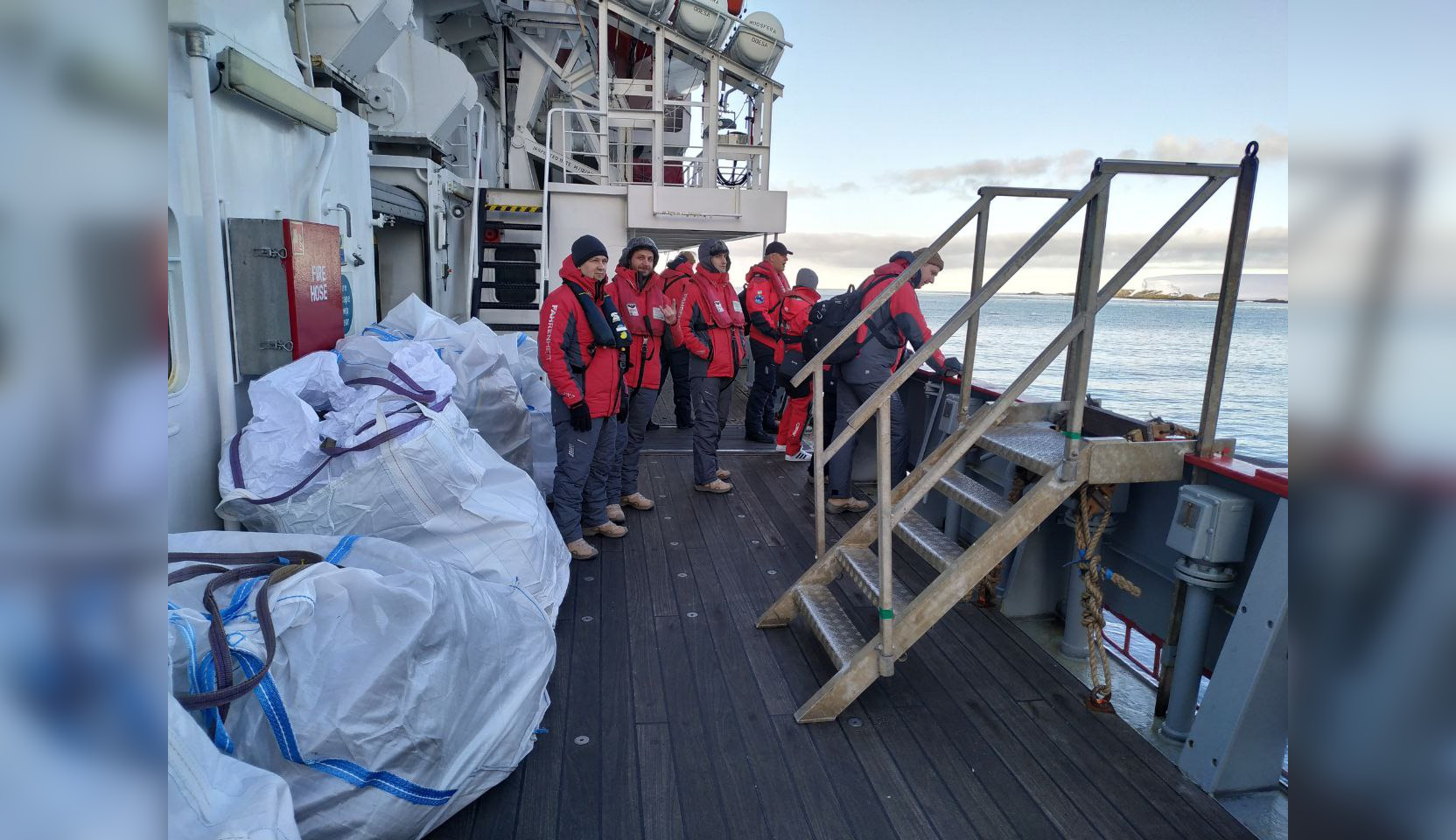 - розвантаження судна, адже на ньому приїхав величезний запас їжі, різноманітних речей та пального на цілий рік. Оскільки рельєф дна не дозволяє криголаму пришвартуватися біля нашого острова, то всі вантажі перевозитимуть на невеликих човнах;