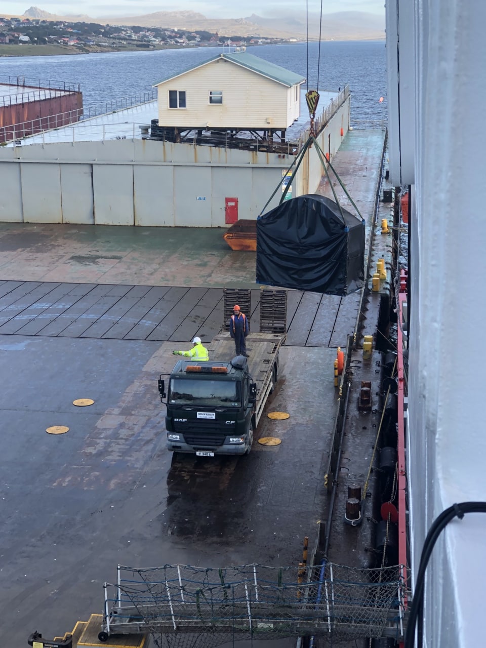 Наразі славнозвісний український криголам «Ноосфера» дійшов з Пунта-Аренасу (Чилі) до порту Стенлі (Фолклендські острови). Там наша команда розвантажила обладнання, яке за проханням Британської антарктичної служби привезла з Чилі. Водночас від британців екіпаж отримав як подарунок кілька палетів смаколиків, за що їм дуже вдячний.