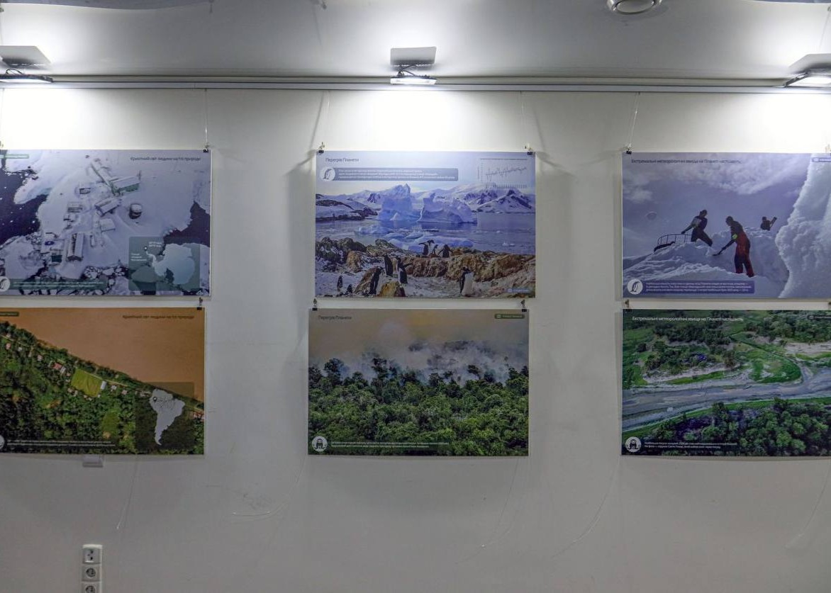 «Деякі керманичі заперечують факт зміни клімату. Так ось виставка надає фотодокази цієї небезпечної тенденції: танення льодовиків в Антарктиці й лісові пожежі в Амазонії, “позеленіння” крижаного континенту та пересохлі річки в колись вологих тропічних лісах», — наголосив під час події директор НАНЦ Євген Дикий.