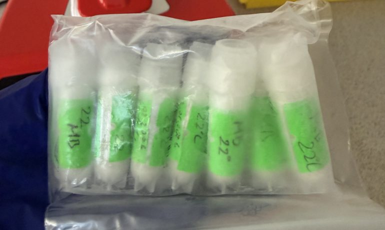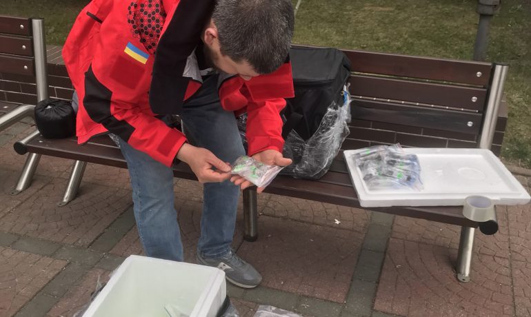Спершу — морозилки на «Ноосфері», далі — кілька перельотів з пересадками в літаках, де проби подорожували з хлодогенними елементами. А у Варшаві до них треба було терміново додати десятки кілограмів льоду, щоб зразки витримали тривалу автобусну подорож до Києва.