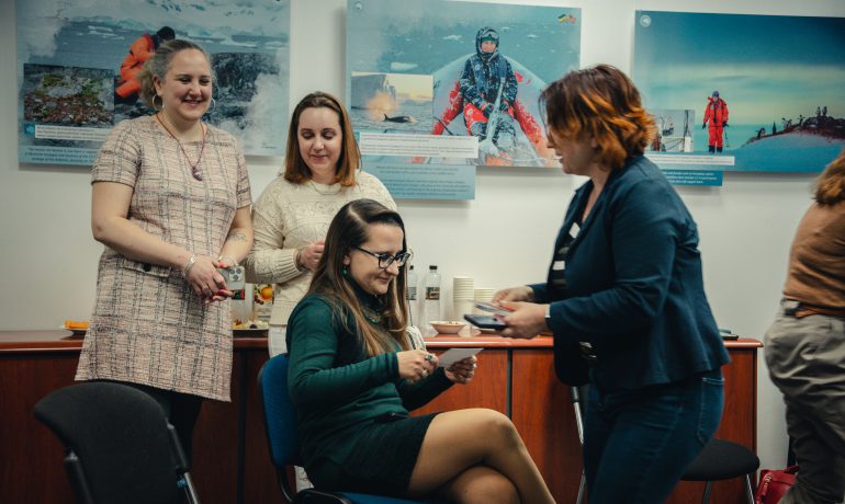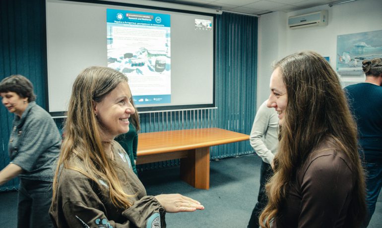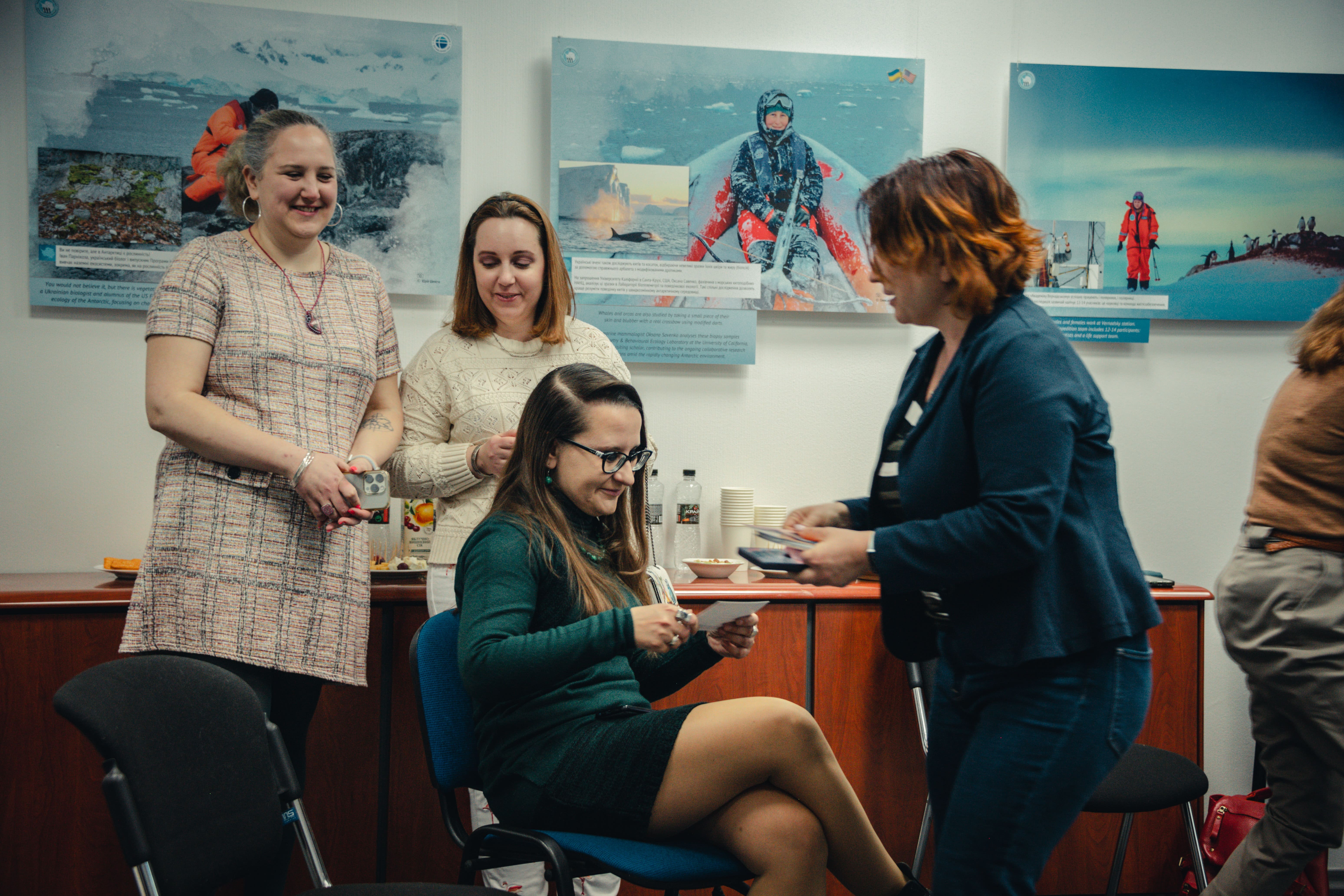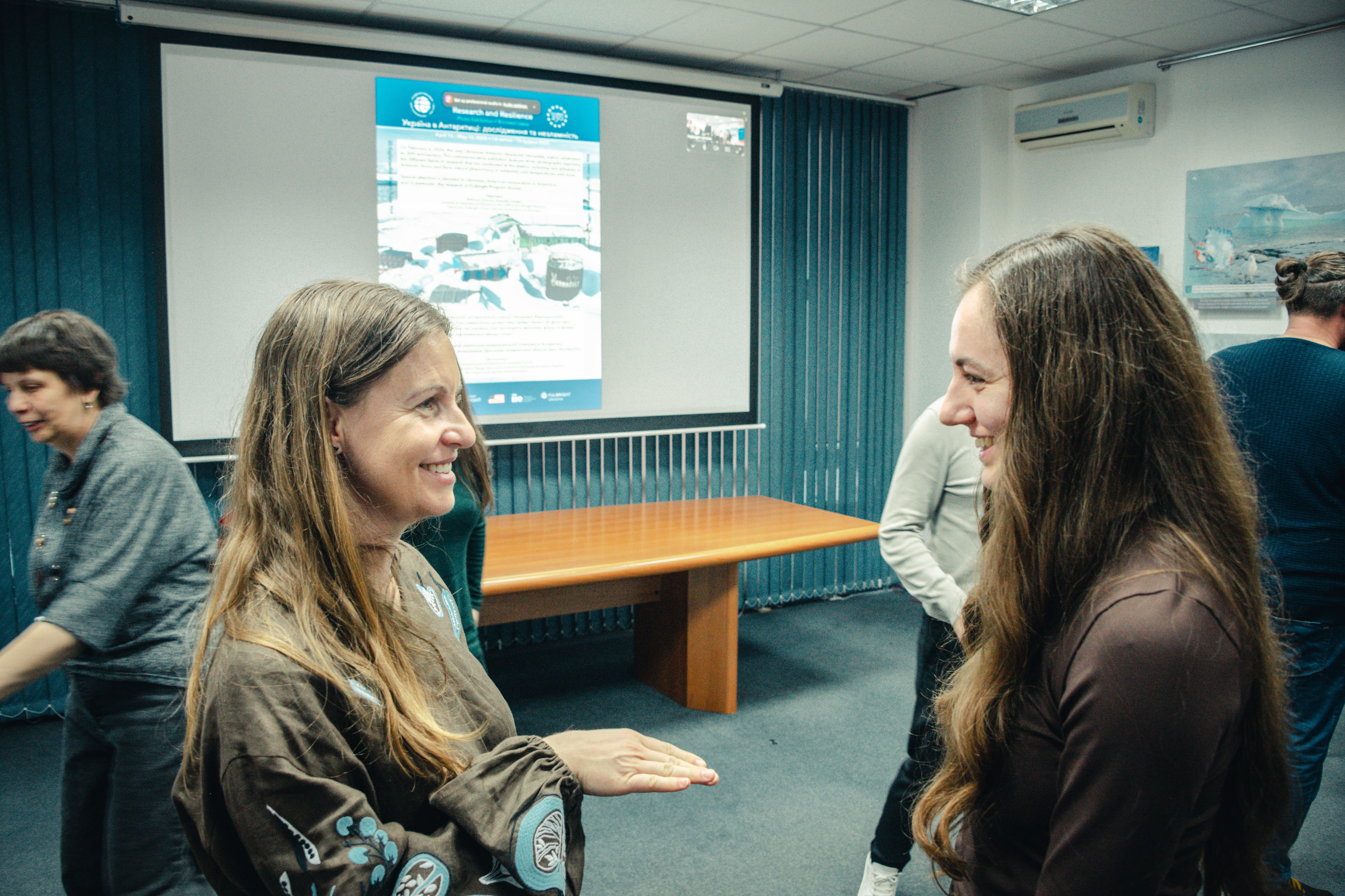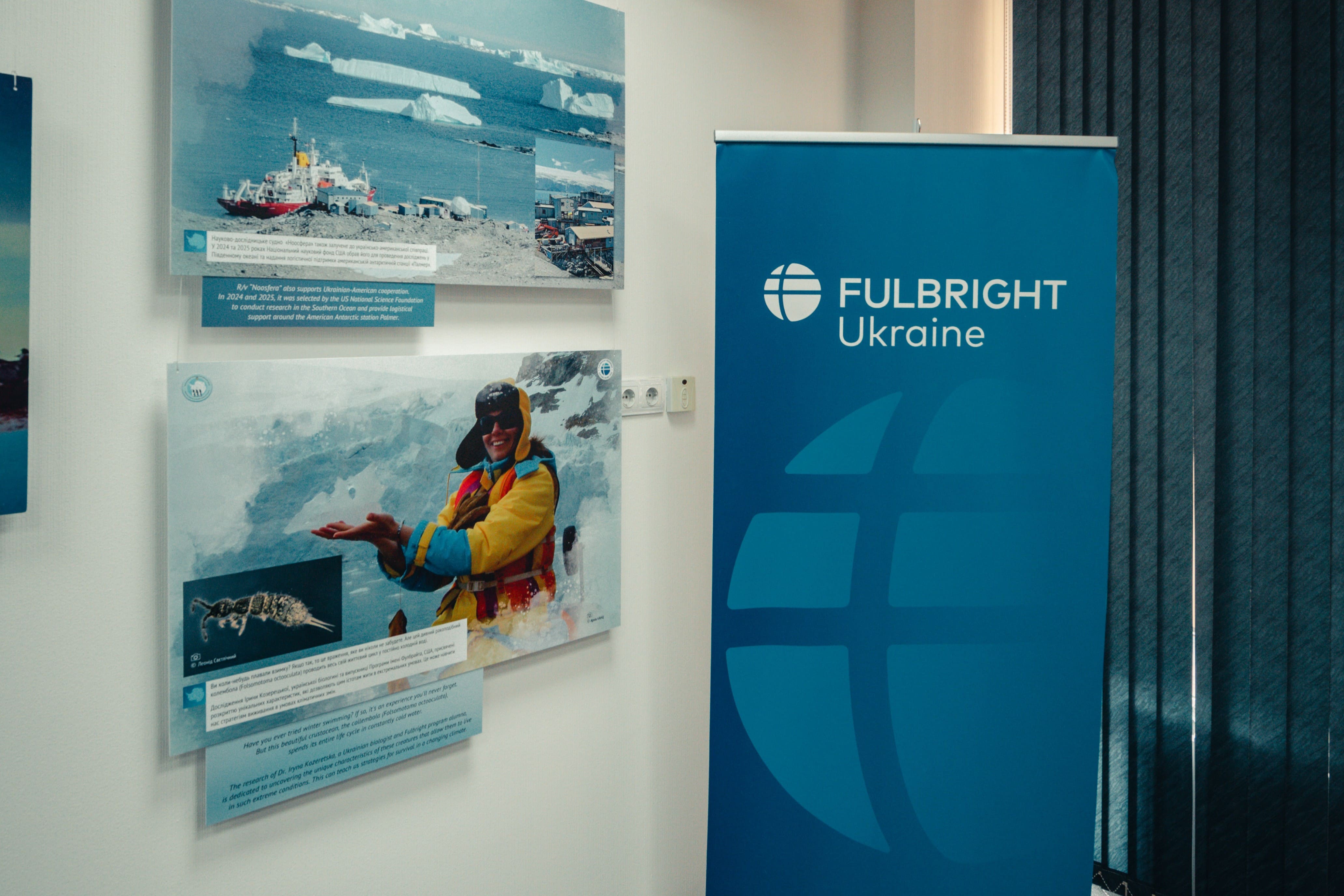 Під час відкриття гостей фулбрайтівського офісу привітала Джессіка Зихович, директорка Програми імені Фулбрайта і Представництва Інституту міжнародної освіти в Україні. Заступниця директора НАНЦ з наукової роботи Ірина Козерецька поділилася власним досвідом учасниці антарктичних експедицій, розповіла про роботу Центру, а також провела екскурсію світлинами.