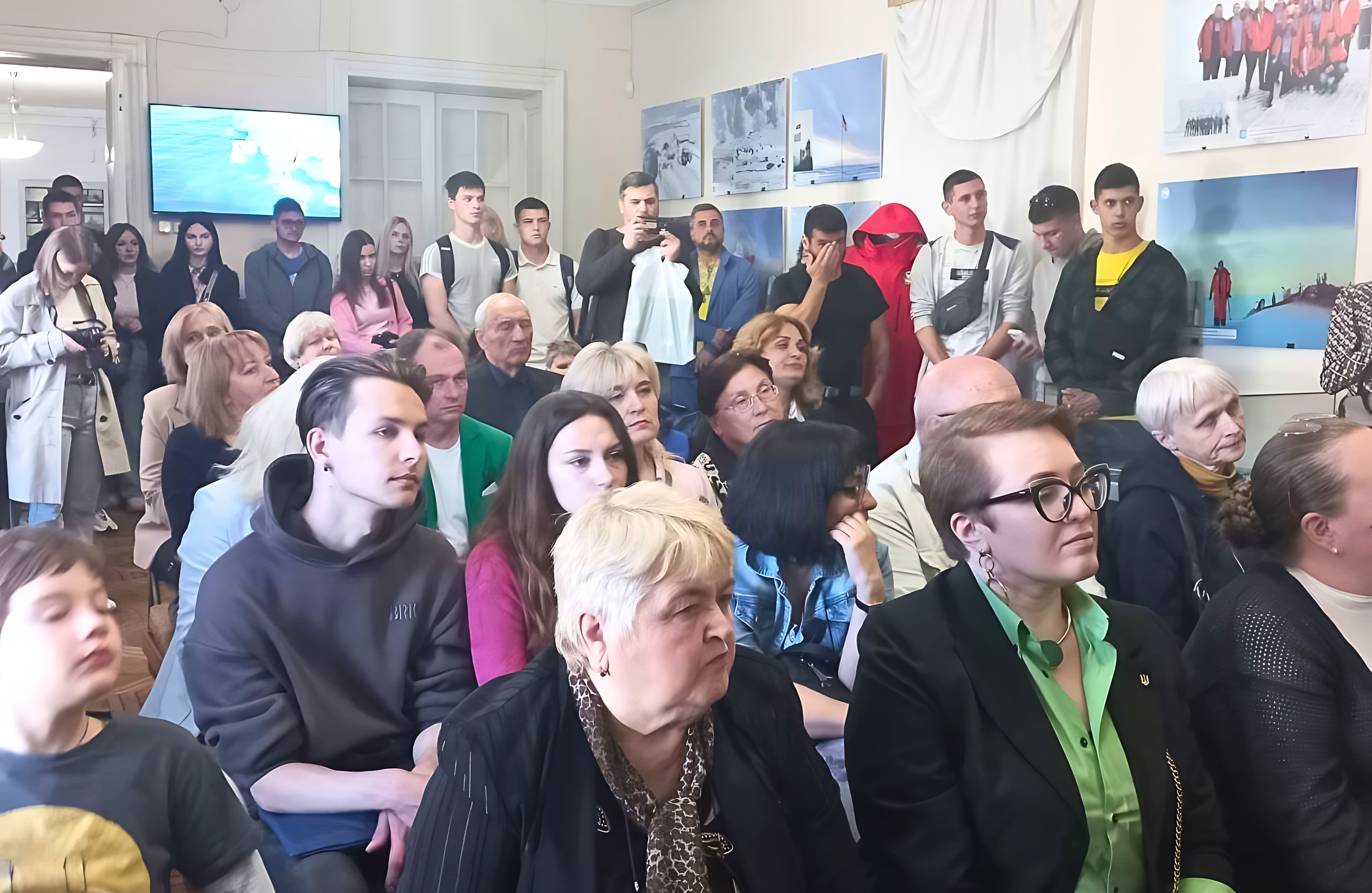 На відкриття виставки завітав миколаївець Андрій Зотов – полярник, який захищав Україну під час АТО та повномасштабного вторгнення рф. Він, зокрема, був учасником останньої сезонної експедиції в Антарктику й поділився своїми враженням про цю поїздку. Насамперед йшлося про дослідження з борту «Ноосфери», адже, як ми писали, в нинішньому сезоні судна була виконана наймасштабніша наукова програма.