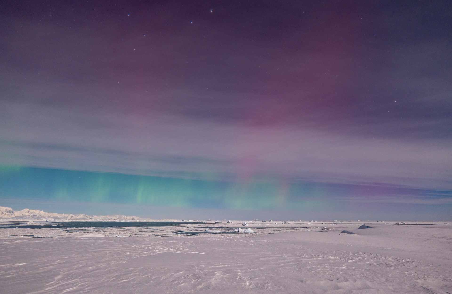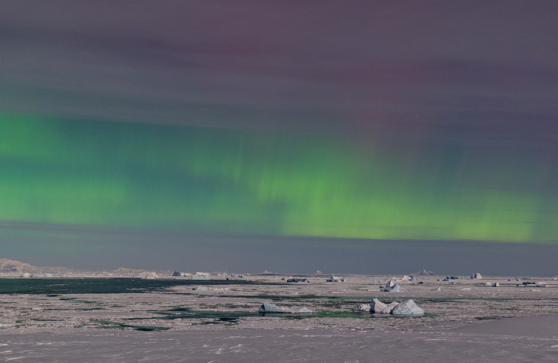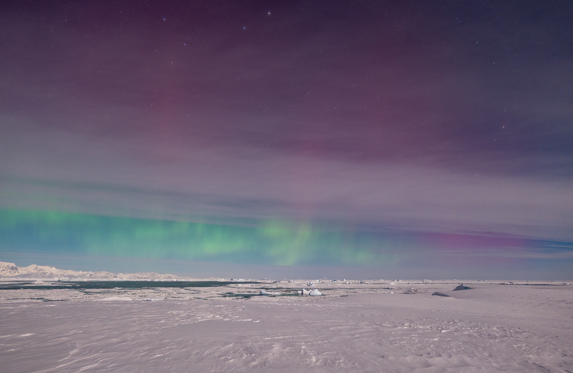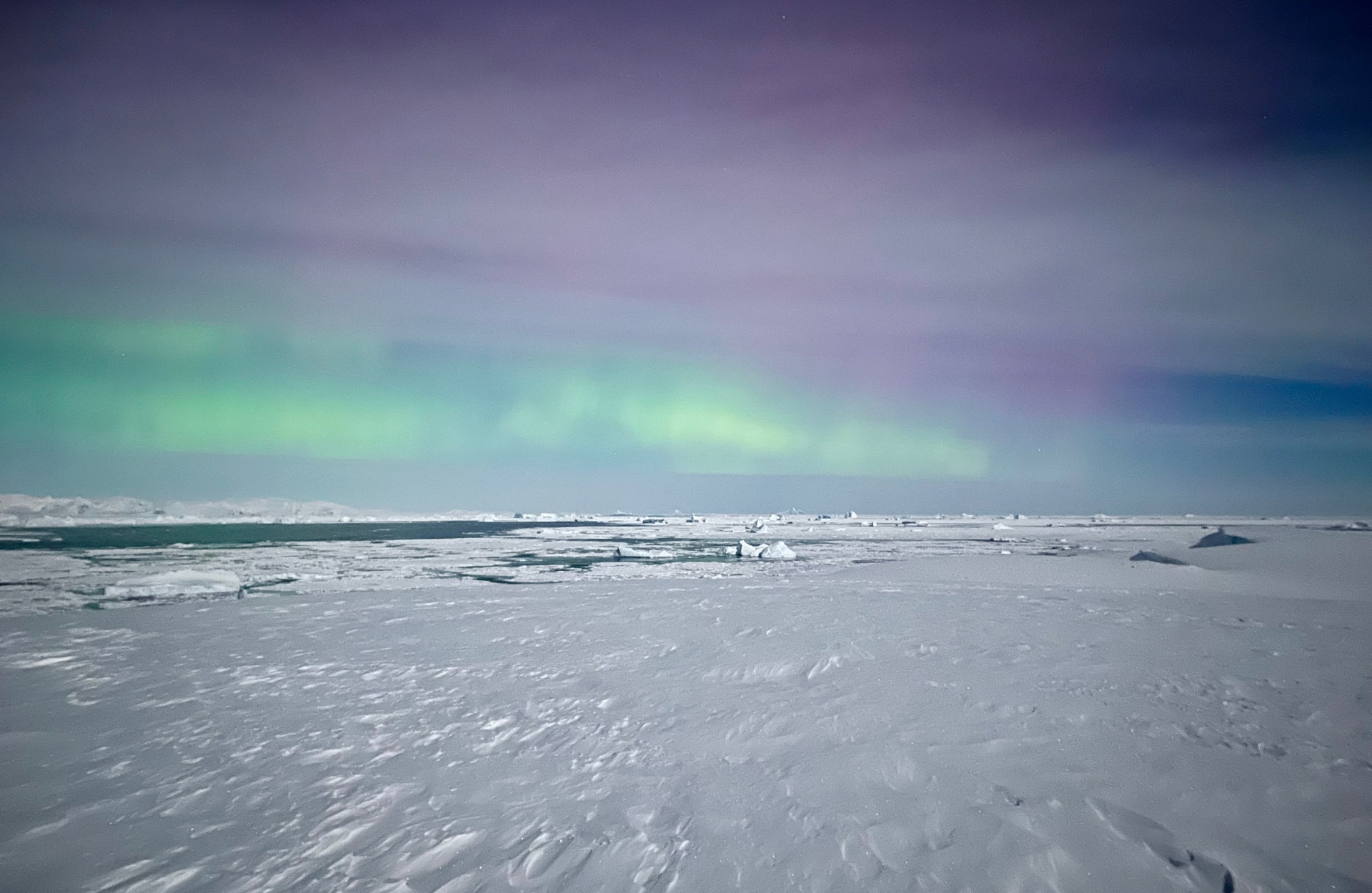 Тож наші полярники одразу вирушили на те місце, де їм вдалося зазнімкувати сяйво місяць тому. І хоч на небі були смуги тонких хмар, а повний місяць яскраво освічував простір, однак близько 15 хвилин дослідники спостерігали унікальне явище.