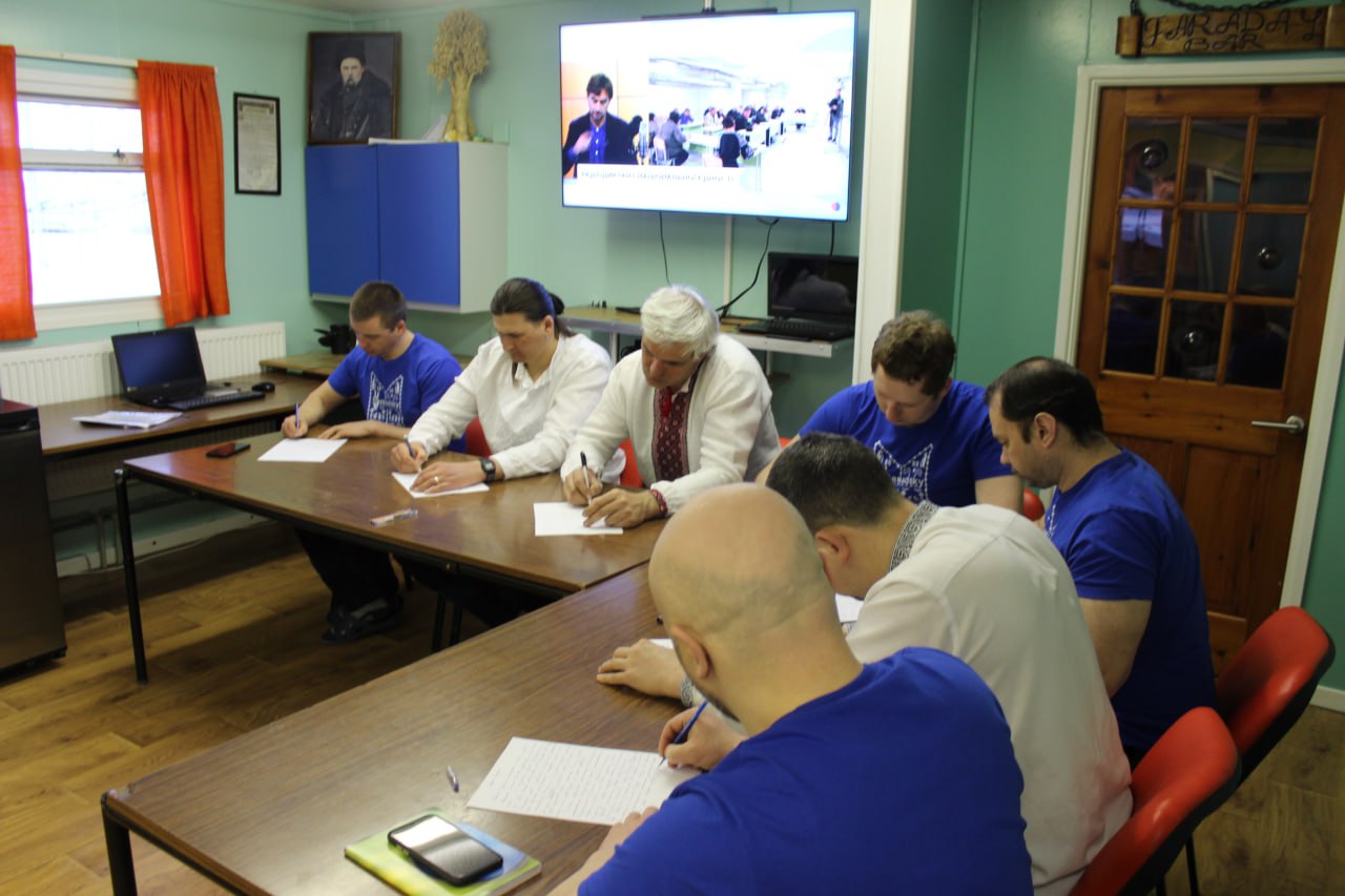 Щоб долучитися до флешмобу, нашим полярникам довелося прокинутися до світанку, оскільки різниця в часі між Україною та островом Галіндез нині становить 6 годин. Тож трохи сонні, але в піднесеному настрої та ще й у вишиванках зимівники 28-ї Української антарктичної експедиції одночасно з усією Україною взяли участь у написанні диктанту.