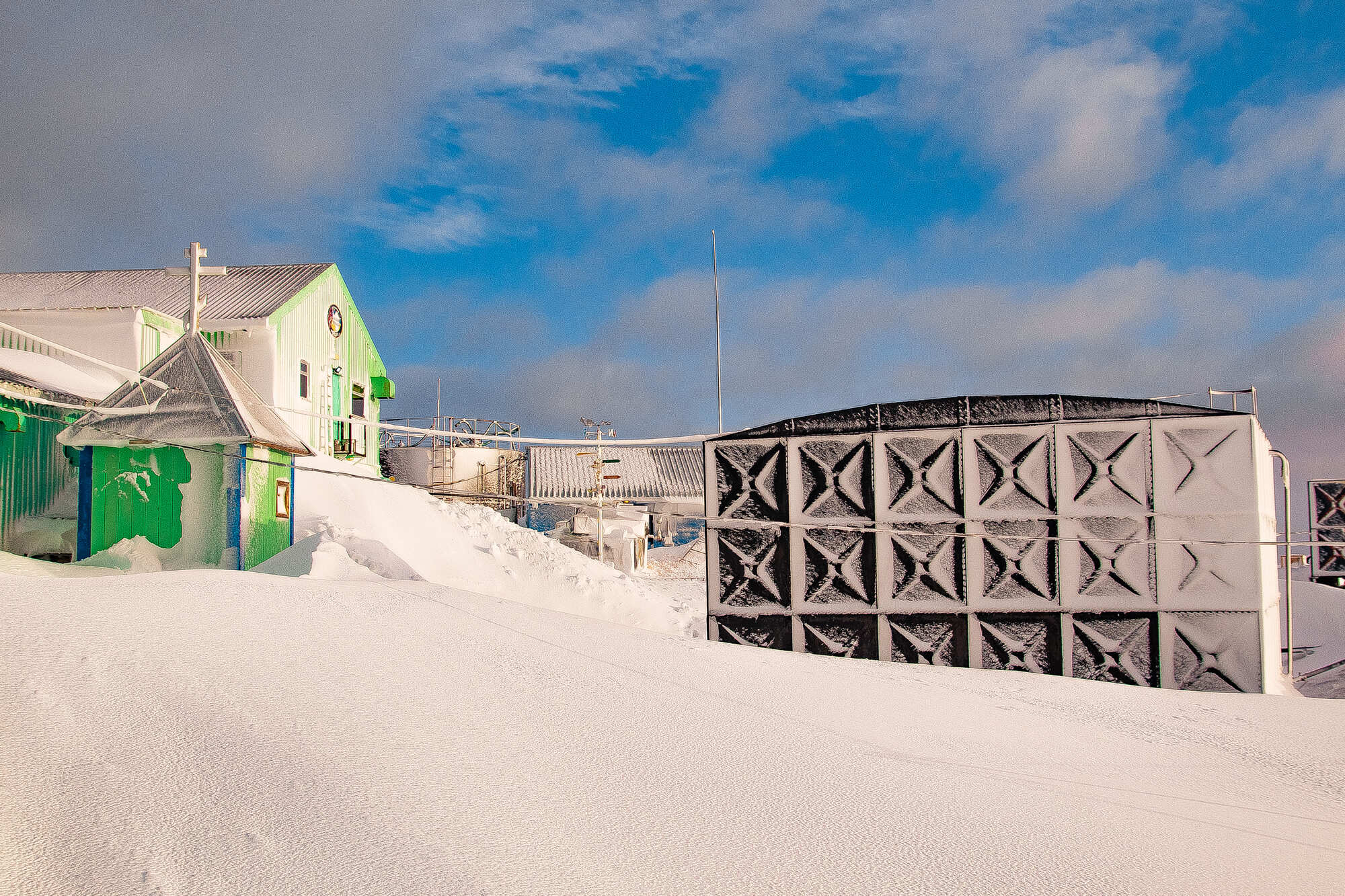 ДНЧ-павільйон з апаратурою для прийому електромагнітних коливань дуже низьких частот (ДНЧ) розташований ще далі від немагнітних павільйонів.