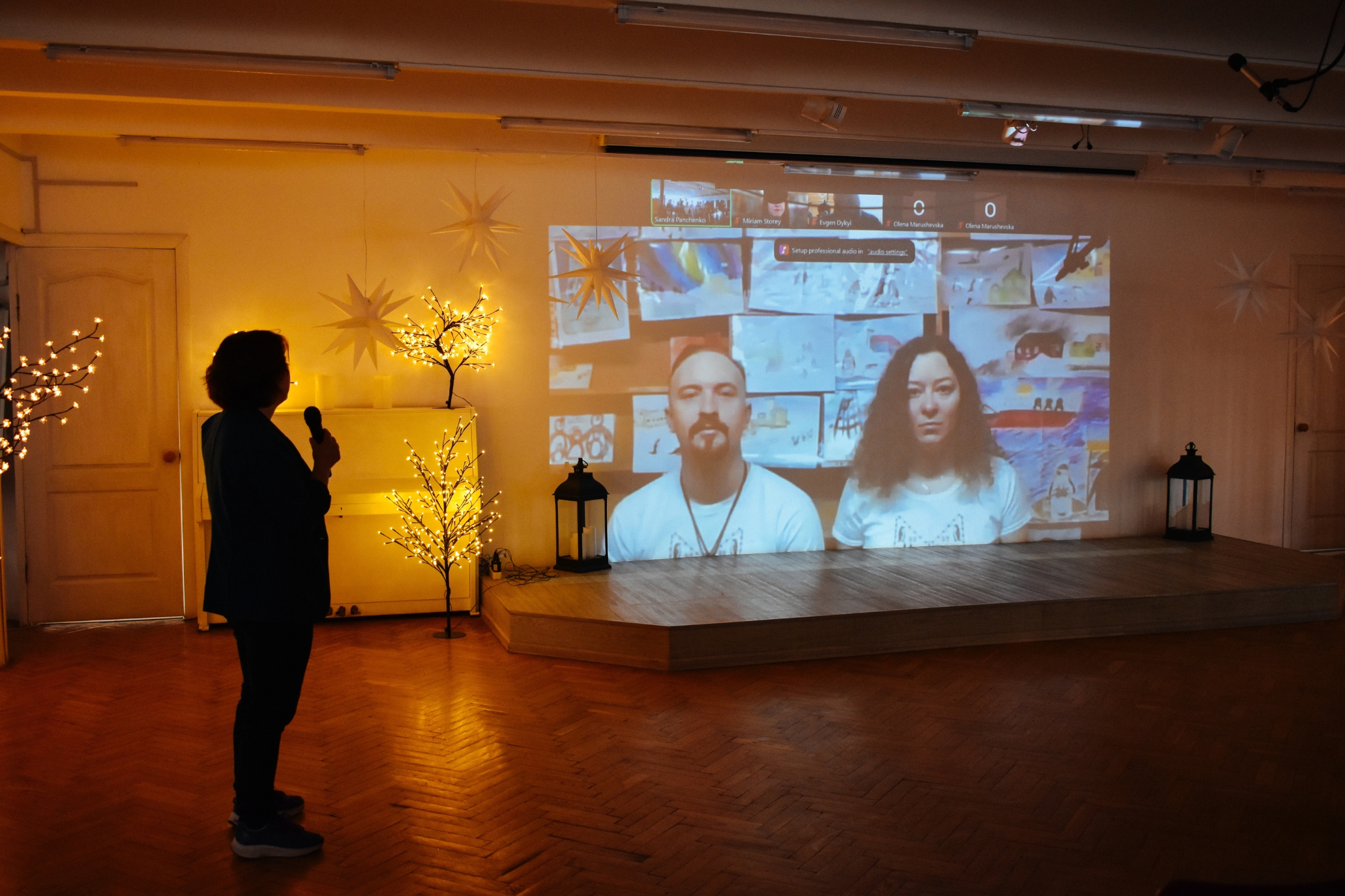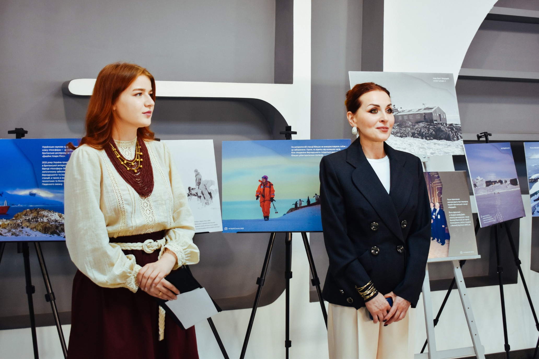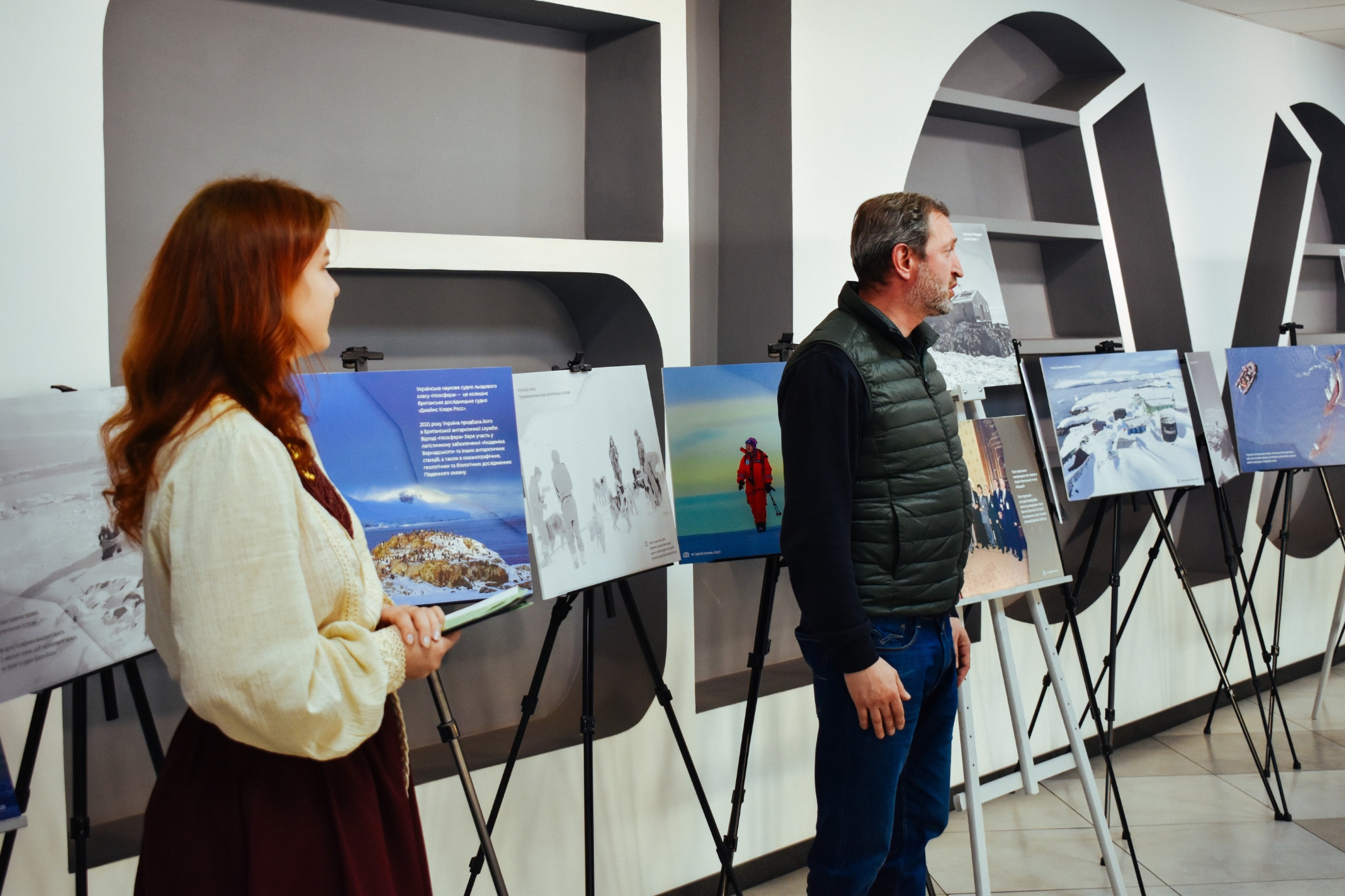 Відкриття виставки привітали з «Вернадського» Назарій Цюпка та Іванна Котурбаш, учасники 29-ї УАЕ. Днями вони почнуть шлях додому після року роботи в Антарктиці.