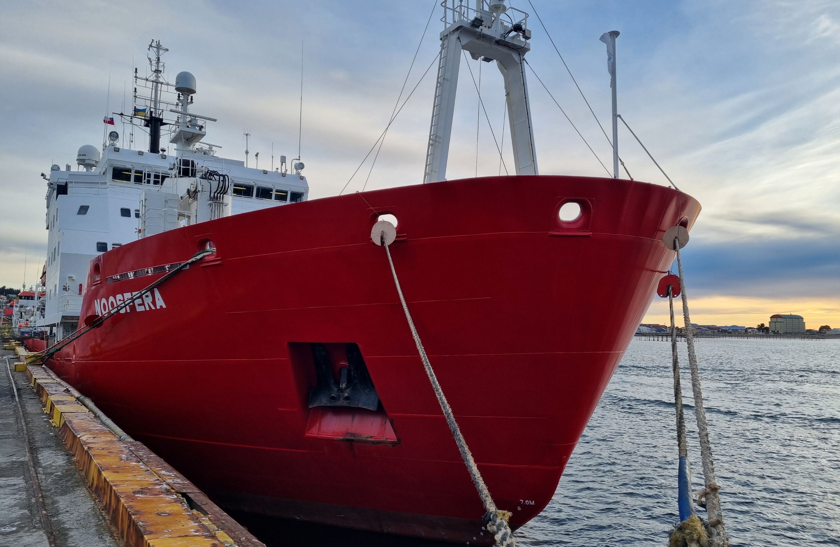 Українське науково-дослідницьке судно “Ноосфера” здійснило черговий антарктичний рейс нинішнього сезону. Сьогодні, 13 квітня 2024 року, наш флагман пришвартувався в порту Пунта-Аренас.